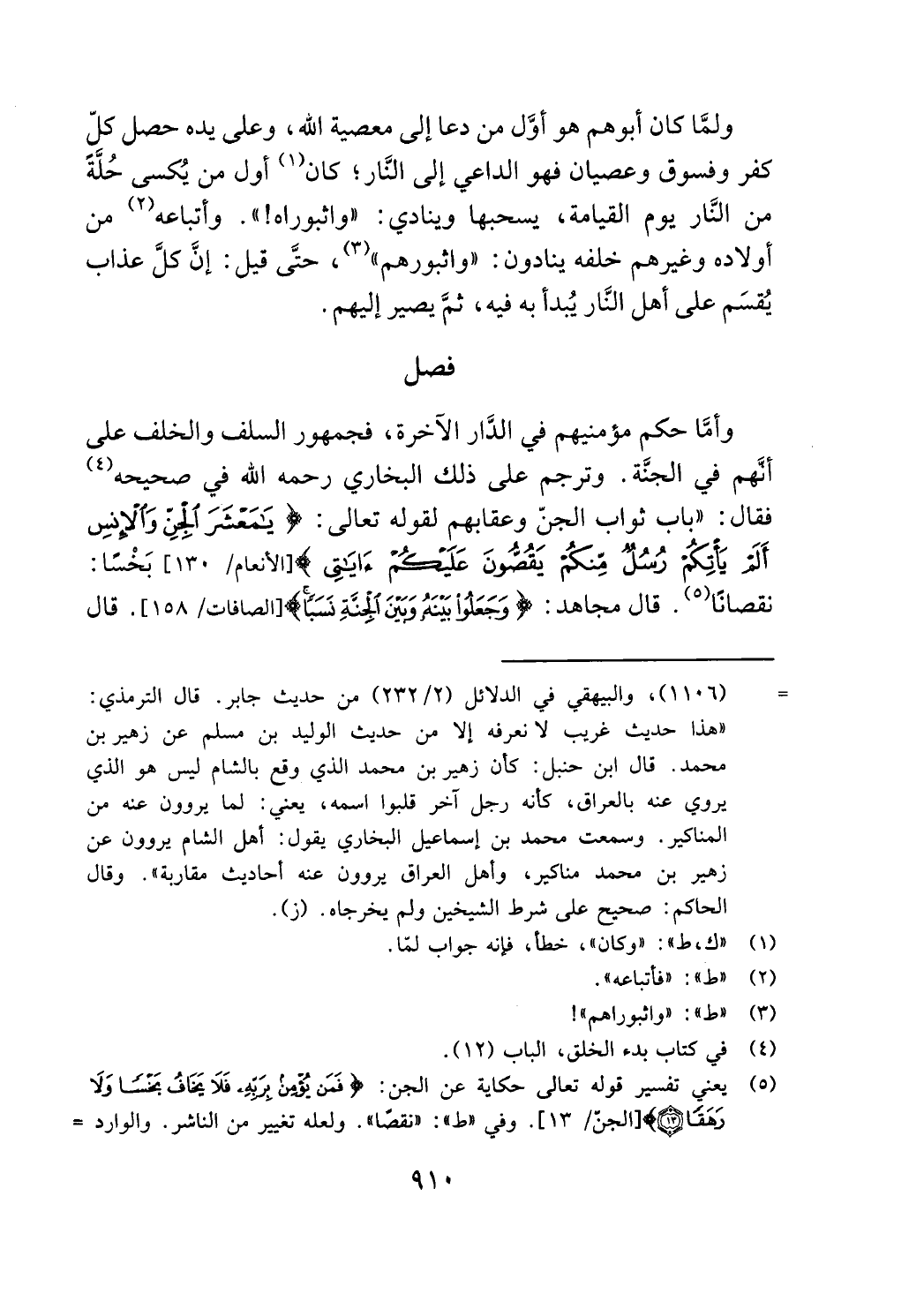 فقال: "باب ثواب الجن وعقابهم لقوله تعالى: < يمعشر الجن و لا! نس