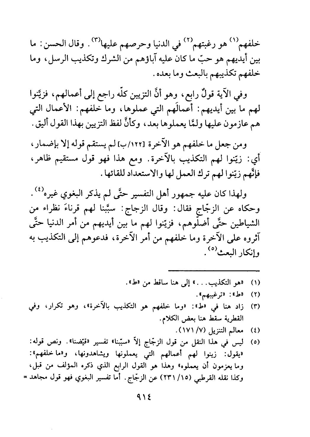 ليس في هذا النقل من قول الزخاج إلأ "سئبنا" تفسير "قيضنا". ونص قوله: