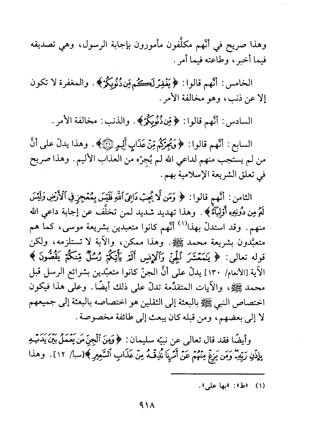 السابع: ألهم قالوا: من لم يستجب منهم لداعي الله لم يجره من العذاب الاليم. وهذا صريح