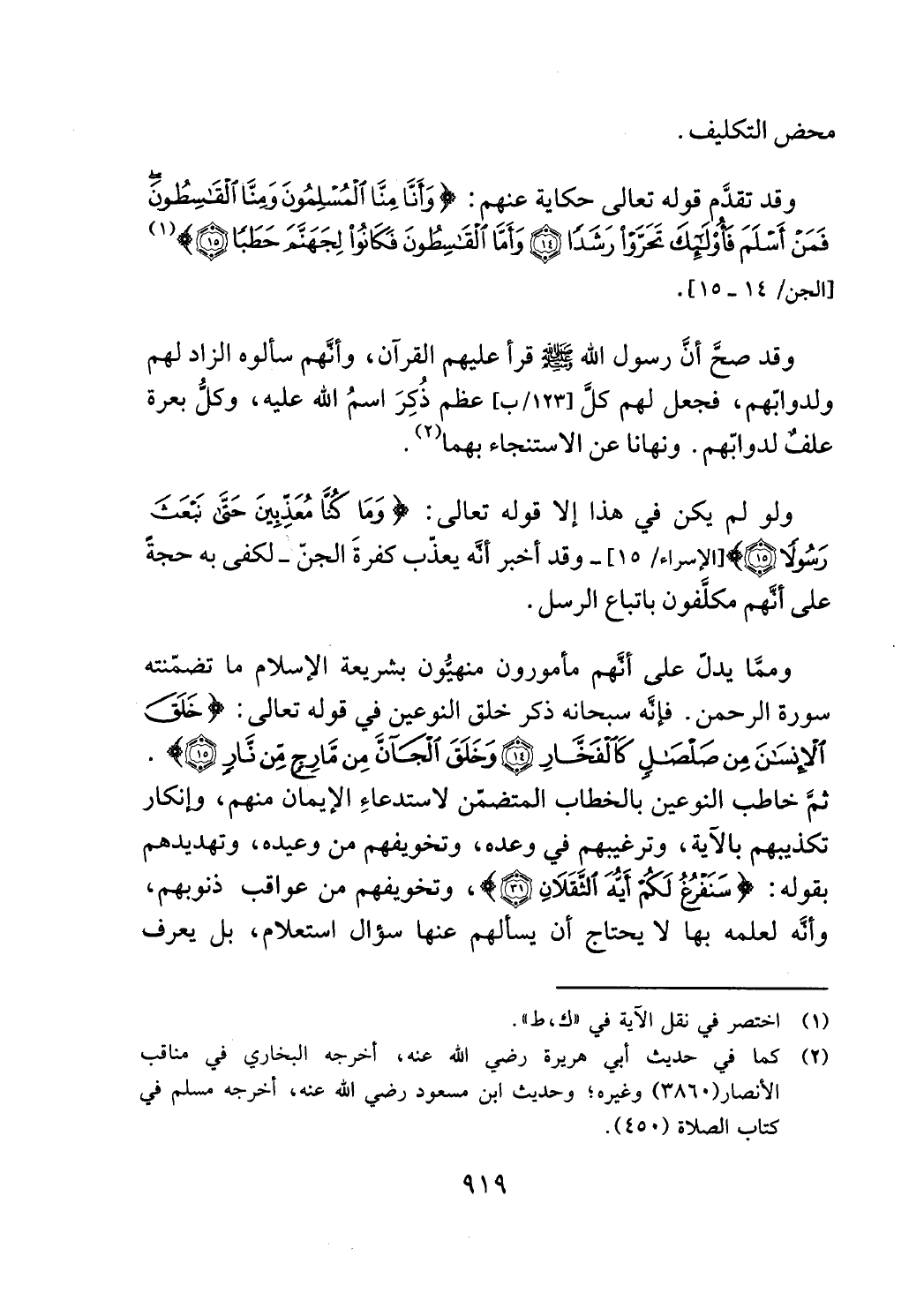 رسو،*> [الاسراء/ 15]- وقد أخبر أله يعذب كفرة الجن - لكفى به حجة