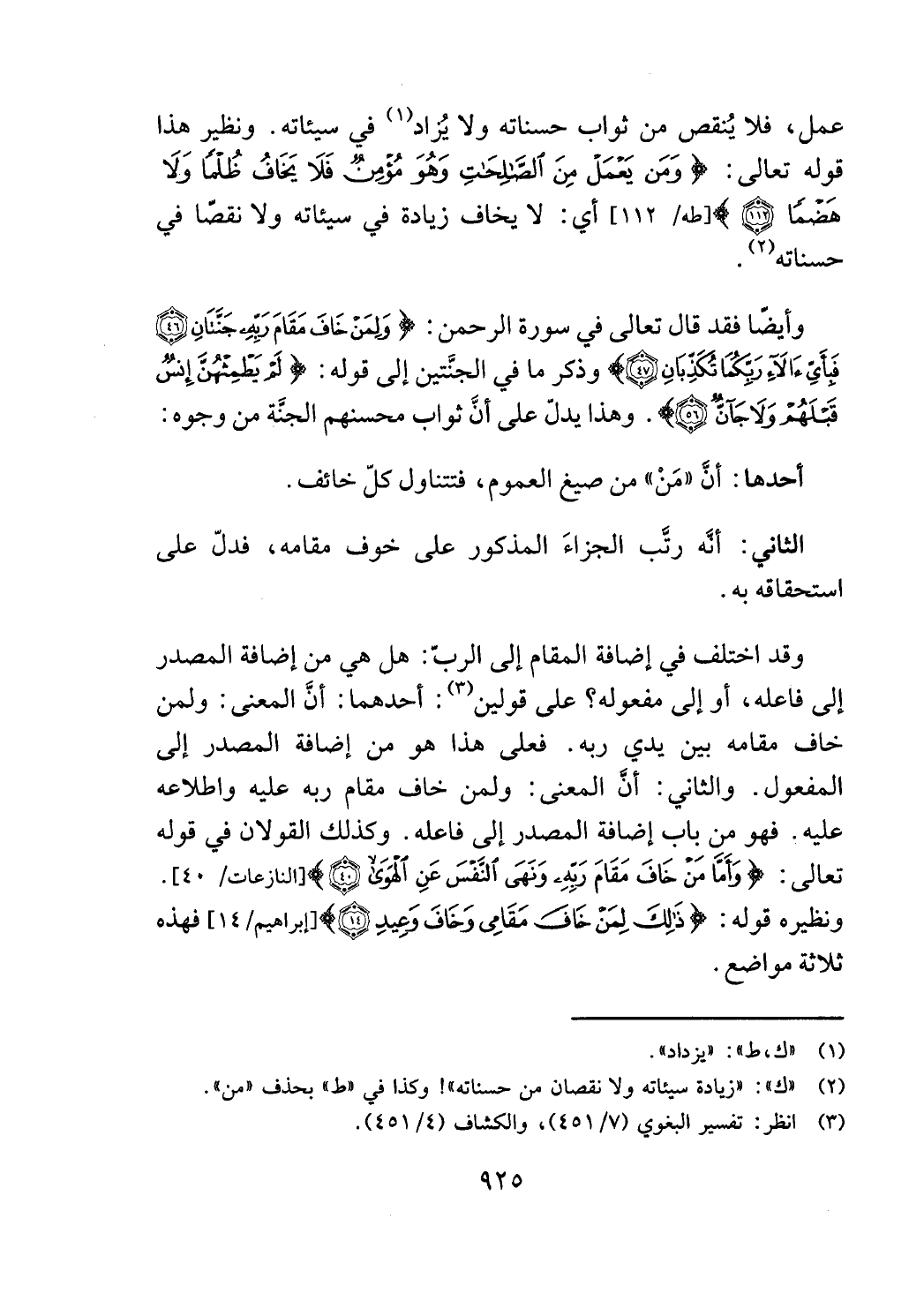الثاتي: أنه رئب الجزاء المذكور على خوف مقامه، فدل على