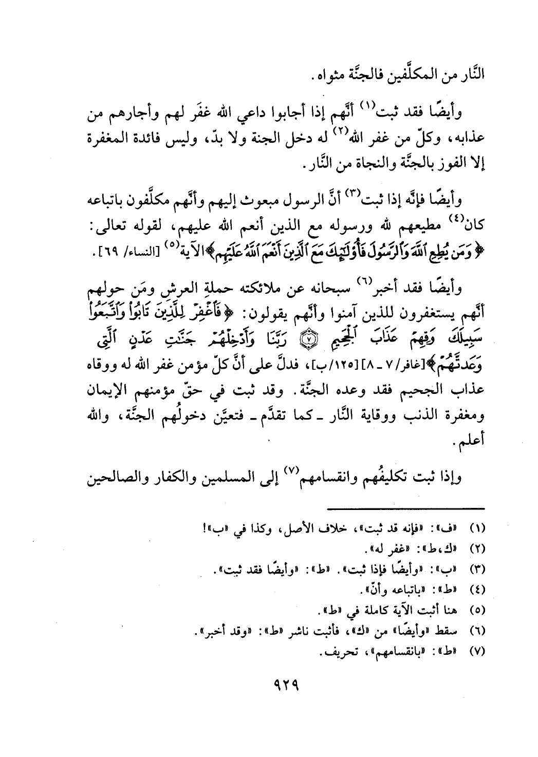 واذا ثبت تكليفهم وانقسامهم (7) إلى المسلمين والكفار والصالحين