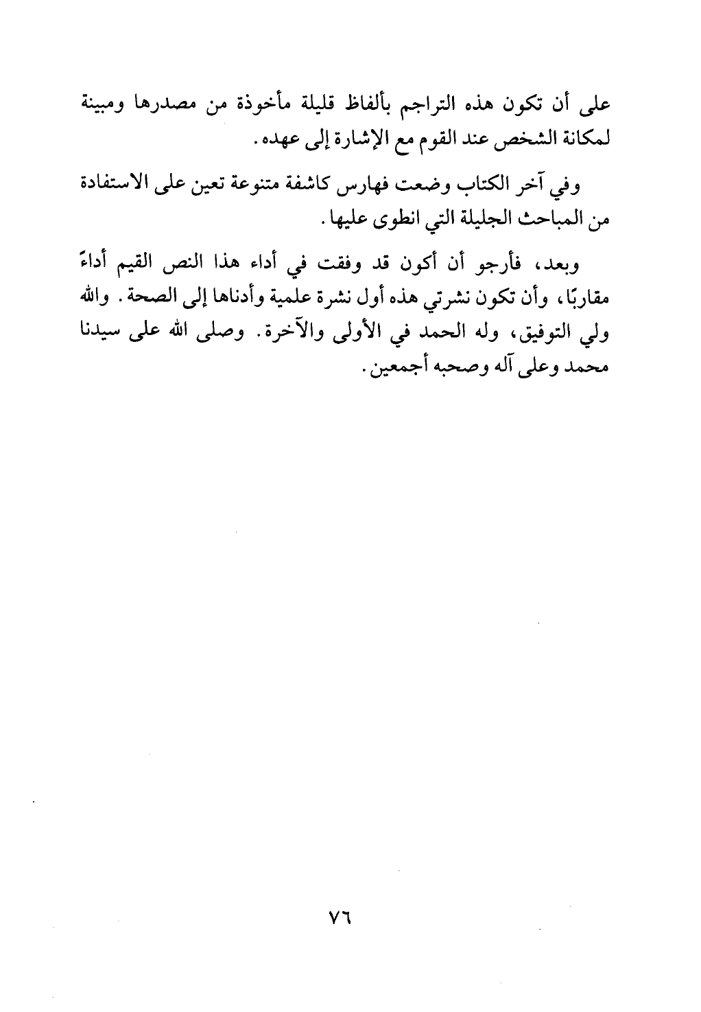 على أن تكون هذه التراجم بألفاظ قليلة مأخوذة من مصدرها ومبينة
