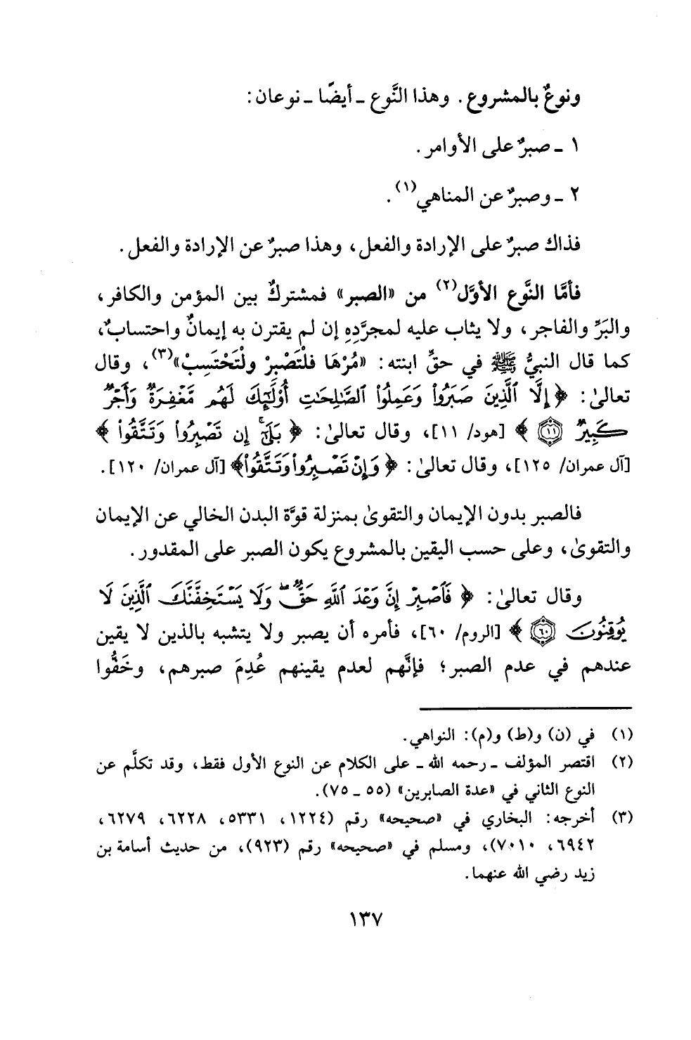 (¬2) اقتصر المؤلف -رحمه الله- على الكلام عن النوع الأول فقط، وقد تكلَّم عن النوع الثاني في "عدة الصابرين" (55 - 75).