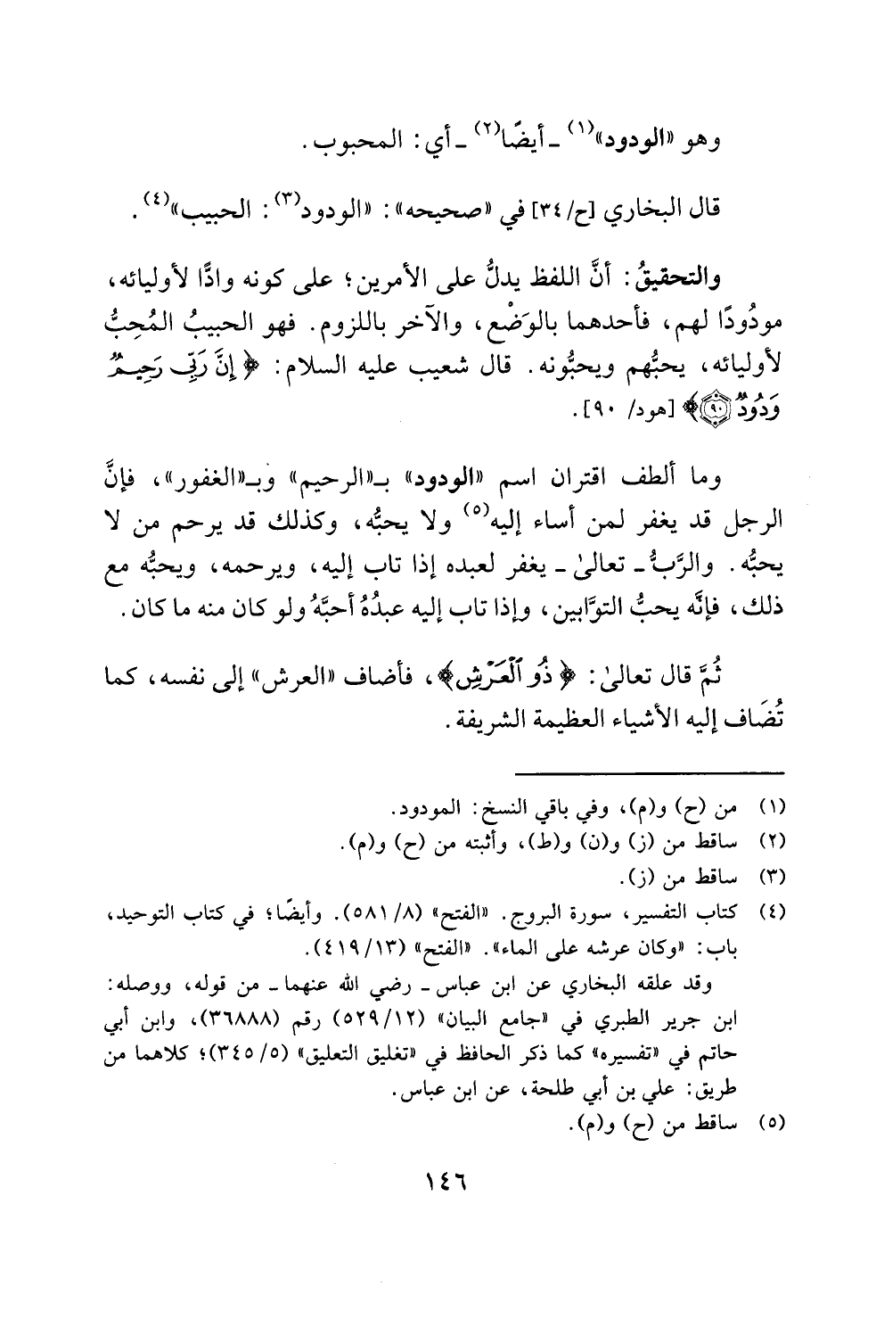 قال البخاري في "صحيحه": "الودود (¬3): الحبيب" (¬4).