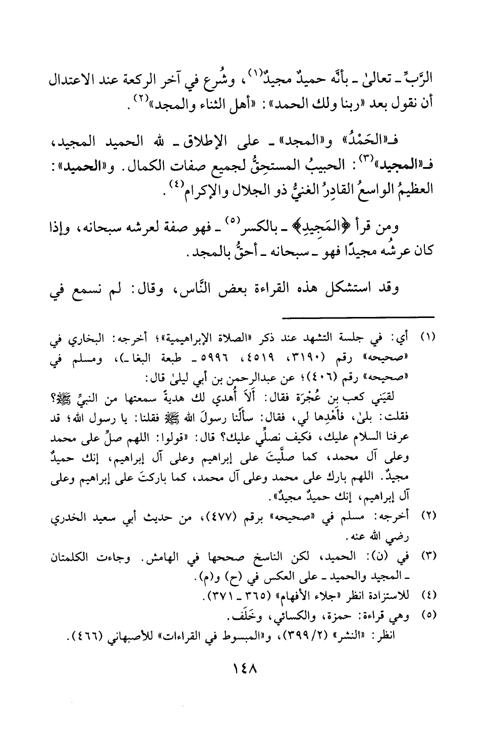 (¬3) في (ن): الحميد، لكن الناسخ صححها في الهامش. وجاءت الكلمتان -المجيد والحميد- على العكس في (ح) و (م).