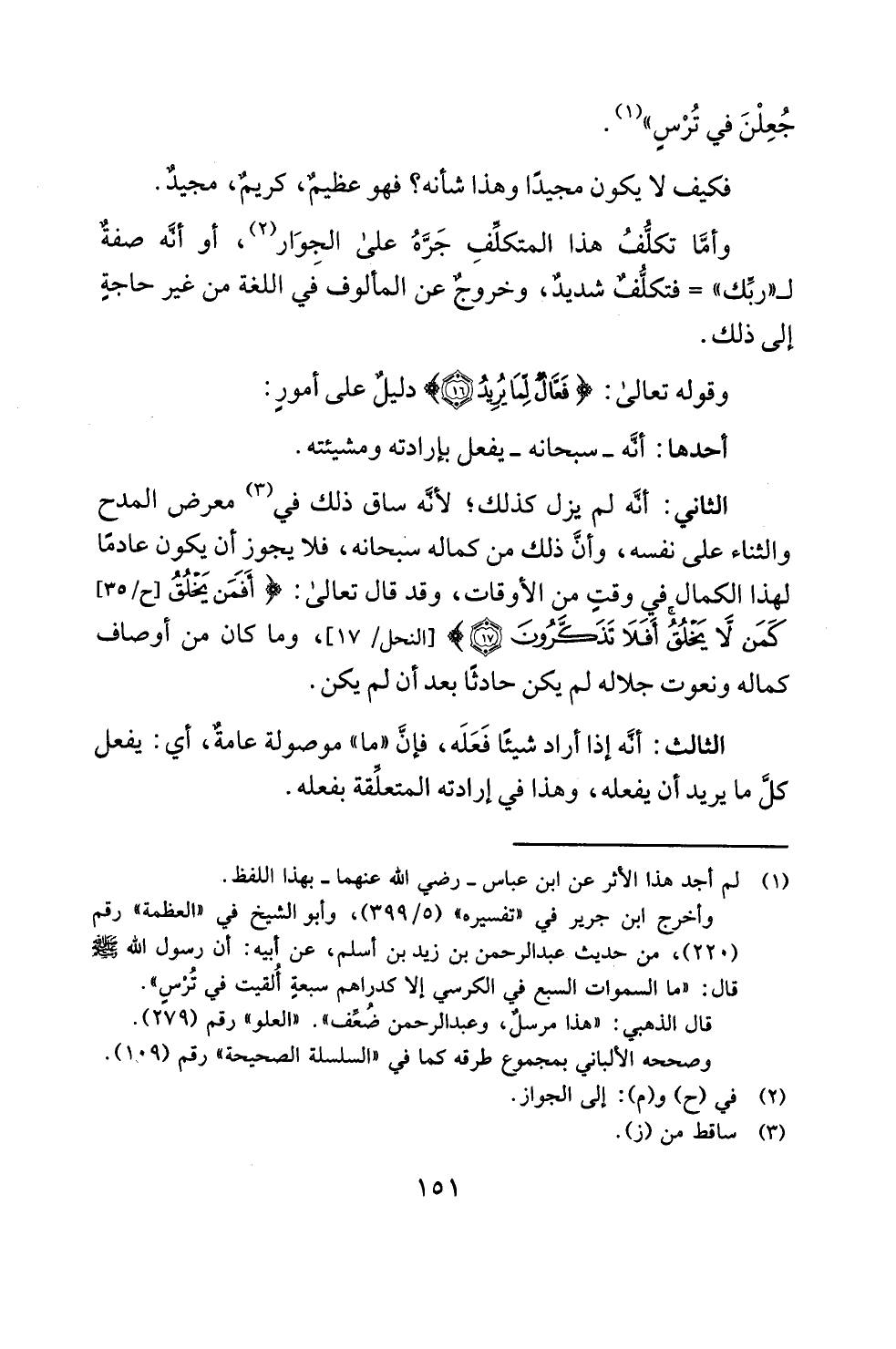 أحدها: أنَّه -سبحانه- يفعل بإرادته ومشيئته.