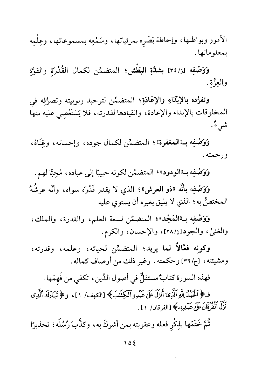 فهذه السورة كتابٌ مستقلٌّ في أصول الدِّين، تكفي من فَهِمَها.