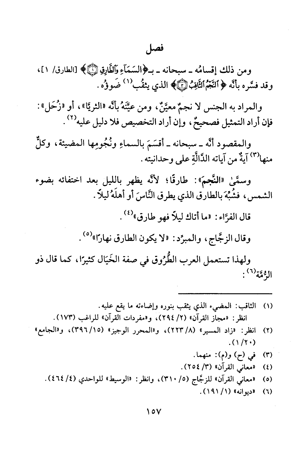 ومن ذلك إقسامُه -سبحانه- بـ {وَالسَّمَاءِ وَالطَّارِقِ (1)} [الطارق: 1]، وقد فسَّره بأنَّه {النَّجْمُ الثَّاقِبُ (3)} الذي يثقُب (¬1) ضَوؤُه.