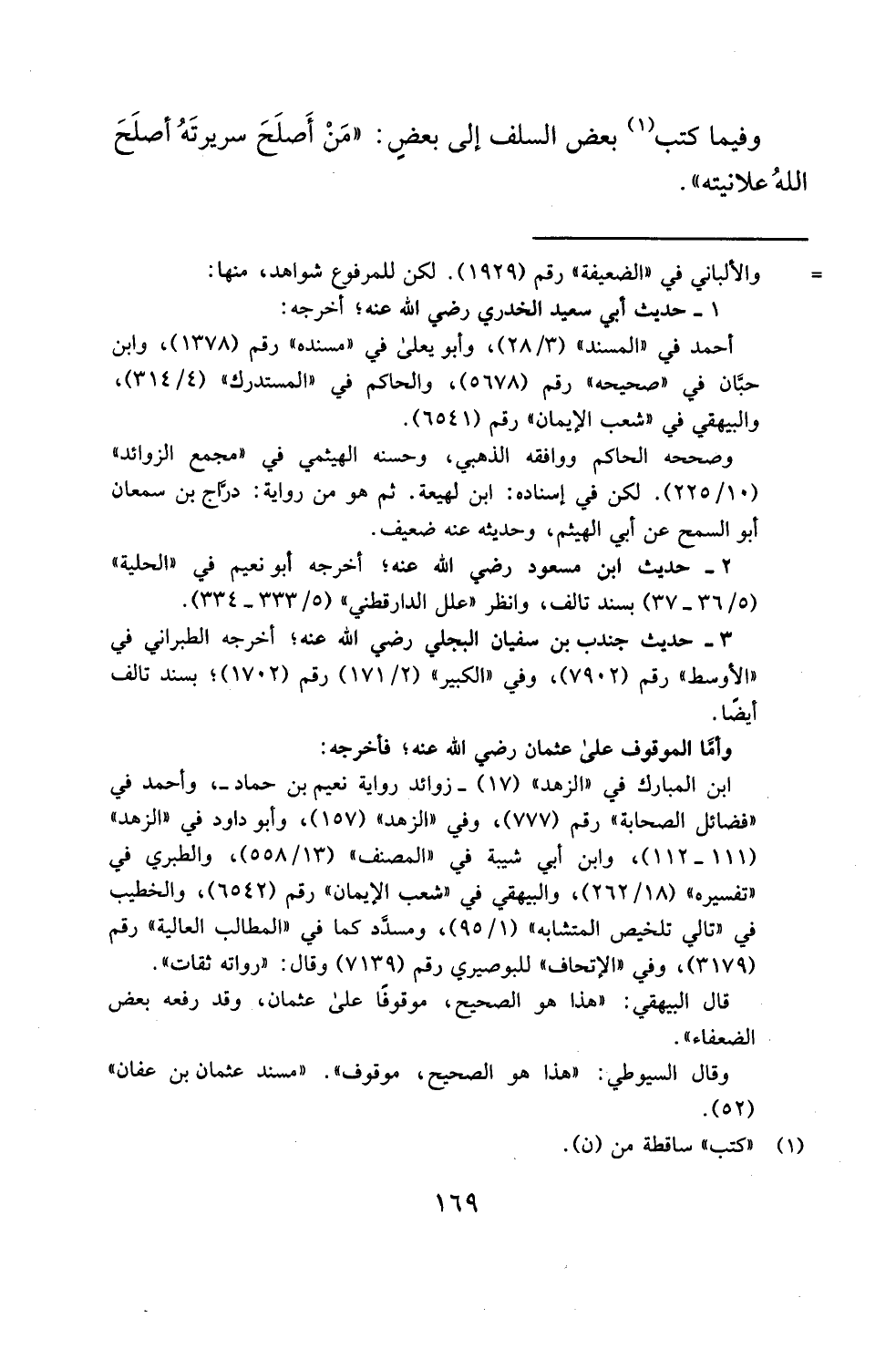وقال السيوطي: "هذا هو الصحيح، موقوف". "مسند عثمان بن عفان" (52).