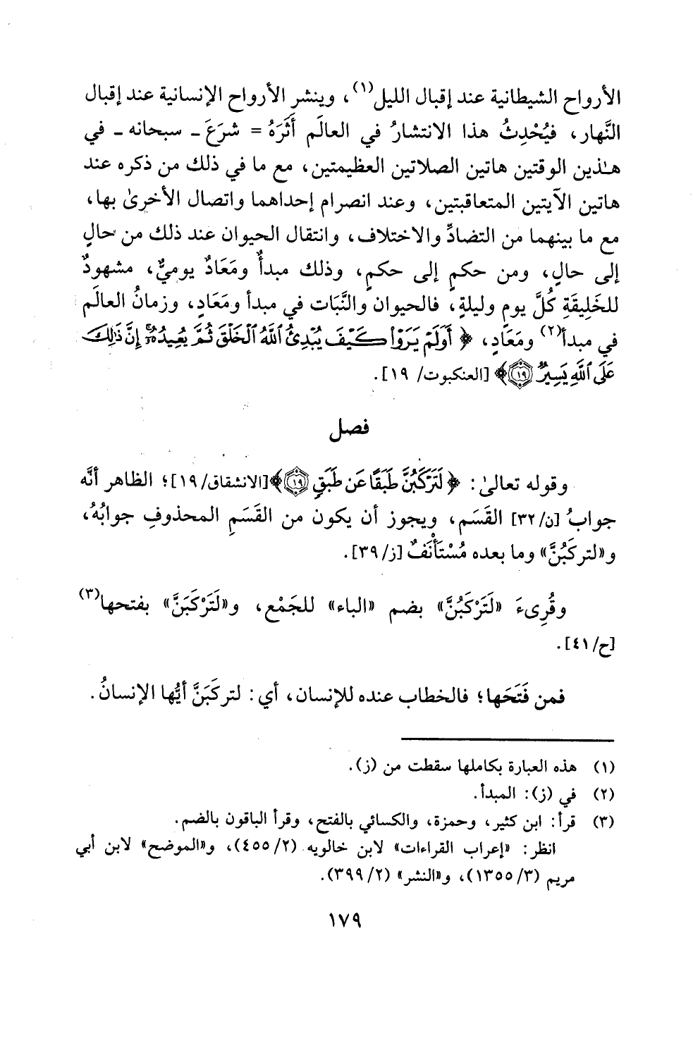 وقُرِئَ "لَتَرْكَبُنَّ" بضم "الباء" للجَمْع، و "لَتَرْكَبَنَّ" بفتحها (¬3).