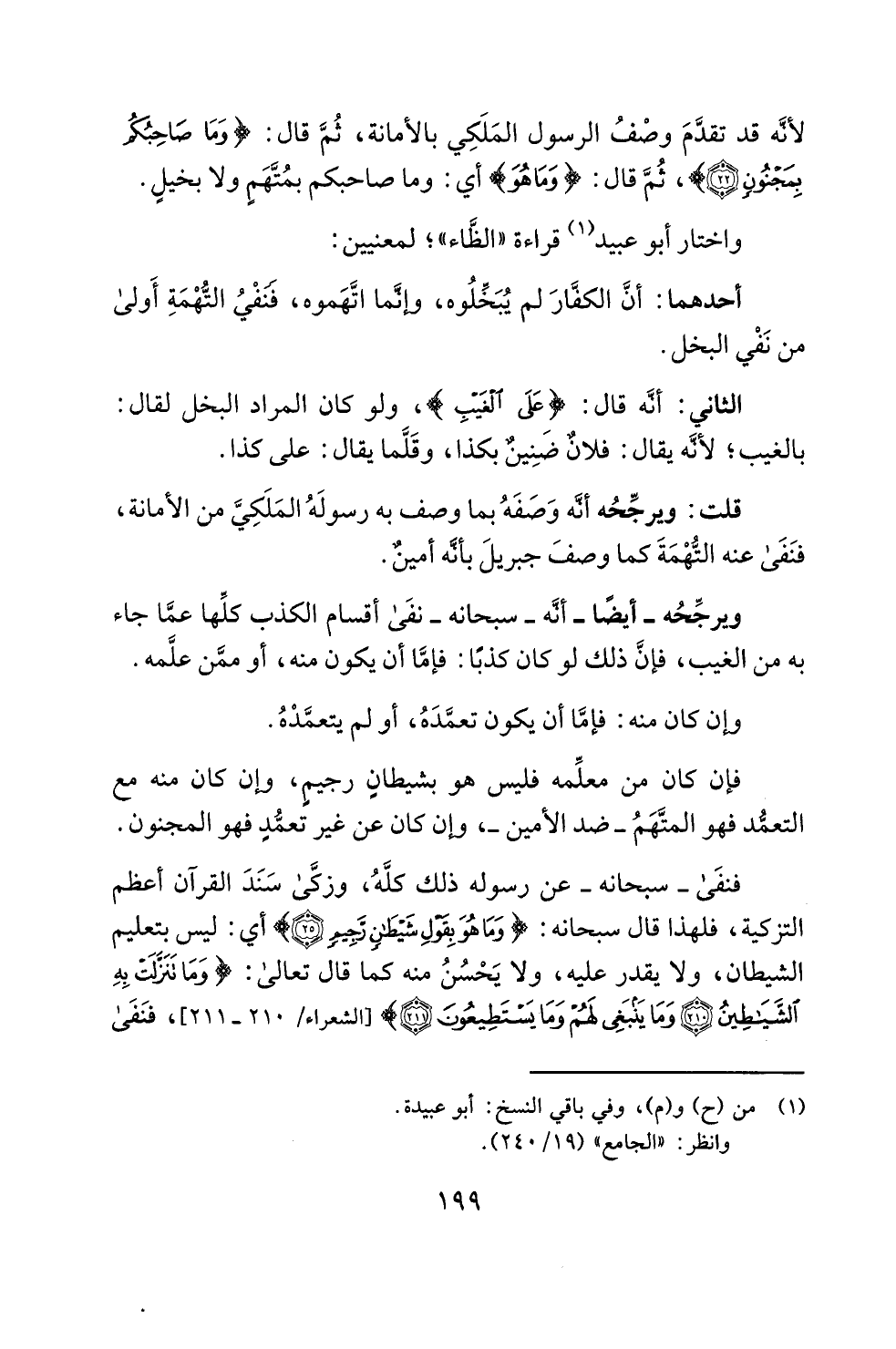 الثانى: أنَّه قال: {عَلَى الْغَيْبِ} ولو كان المراد البخل لقال: بالغيب؛ لأنَّه يقال: فلانٌ ضنِينٌ بكذا، وقَلَّما يقال: على كذا.