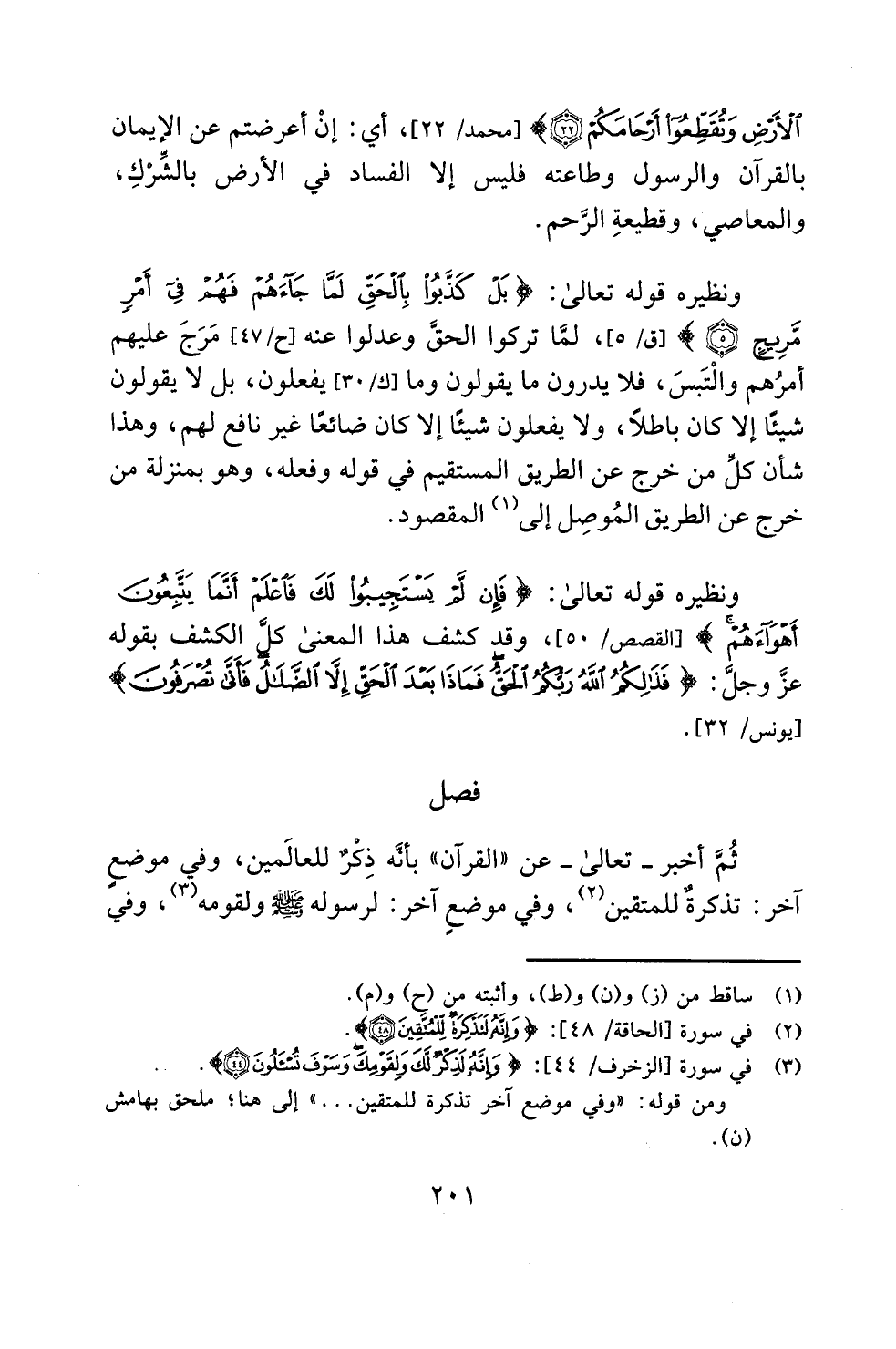 ونظيره قوله تعالى: {فَإِنْ لَمْ يَسْتَجِيبُوا لَكَ فَاعْلَمْ أَنَّمَا يَتَّبِعُونَ أَهْوَاءَهُمْ} [القصص: 50]، وقد كشف هذا المعنى كلَّ الكشف بقوله عزَّ وجلّ: {فَذَلِكُمُ اللَّهُ رَبُّكُمُ الْحَقُّ فَمَاذَا بَعْدَ الْحَقِّ إِلَّا الضَّلَالُ فَأَنَّى تُصْرَفُونَ} [يونس: 32].