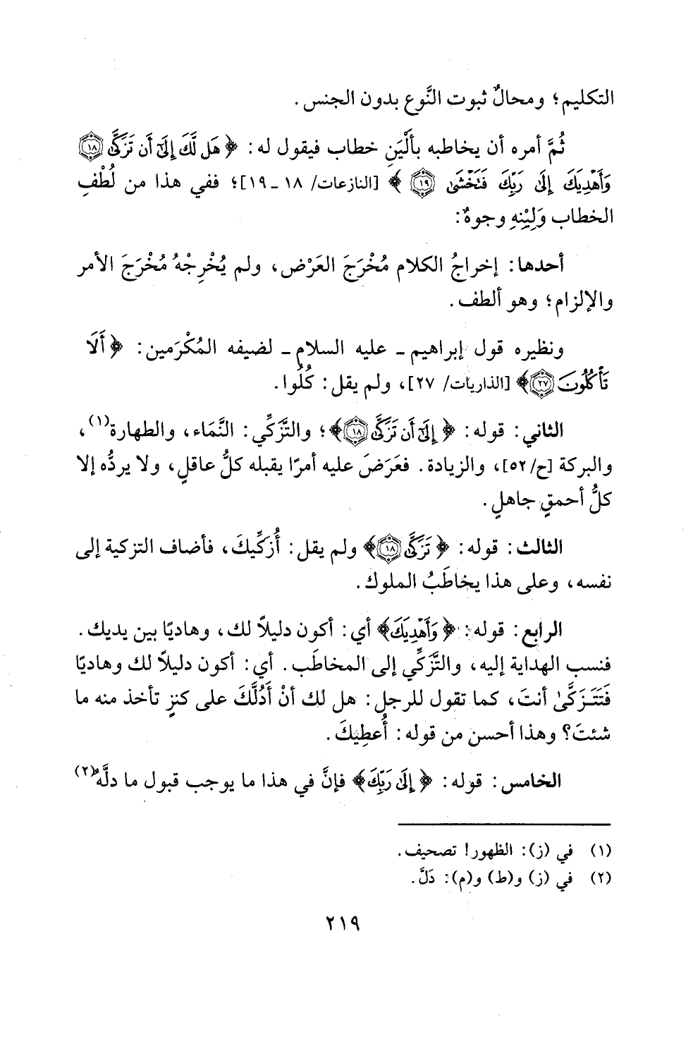 الثاني: قوله: {إِلَى أَنْ تَزَكَّى (18)}؛ والتَّزَكَي: النَّمَاء، والطهارة (¬1)، والبركة، والزيادة. فعَرَضَ عليه أمرًا يقبله كلُّ عاقل، ولا يردُّه إلا كلُّ أحمقٍ جاهلٍ.