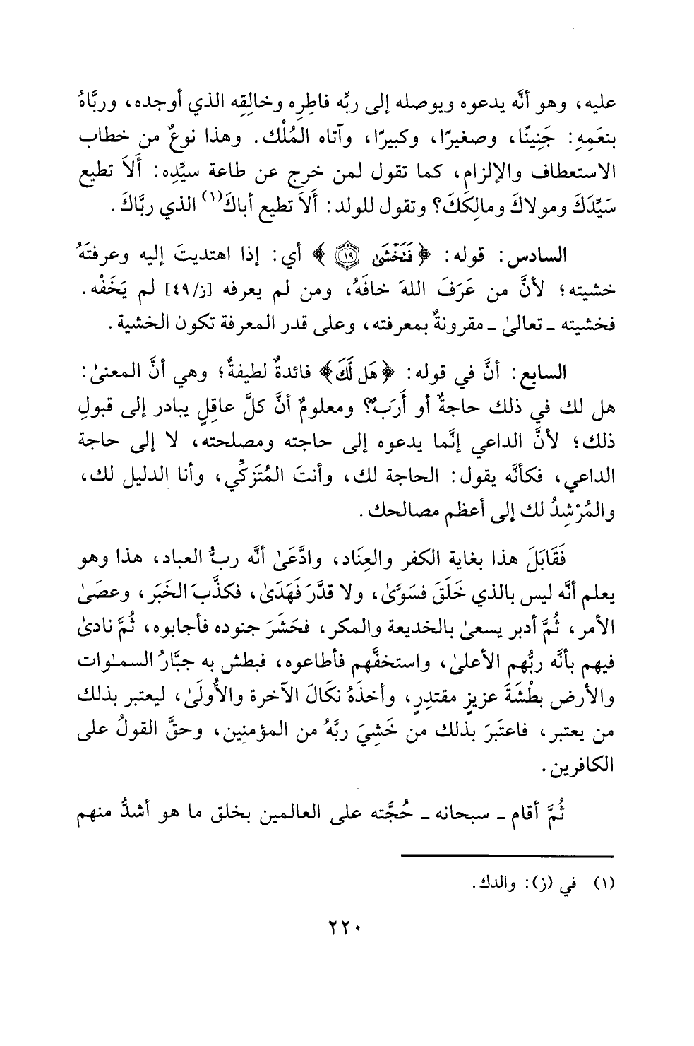 عليه، وهو أنَّه يدعوه ويوصله إلى ربِّه فاطِرِه وخالِقِه الذي أوجده، وربَّاهُ بنعَمِهِ: جَنِينًا، وصغيرًا، وكبيرًا، وآتاه المُلْك. وهذا نوعٌ من خطاب الاستعطاف والإلزامِ، كما تقول لمن خرج عن طاعة سيِّدِه: أَلاَ تطيع سَيِّدَكَ ومولاكَ ومالِككَ؟ وتقول للولد: أَلاَ تطيع أباكَ (¬1) الذي ربَّاكَ.