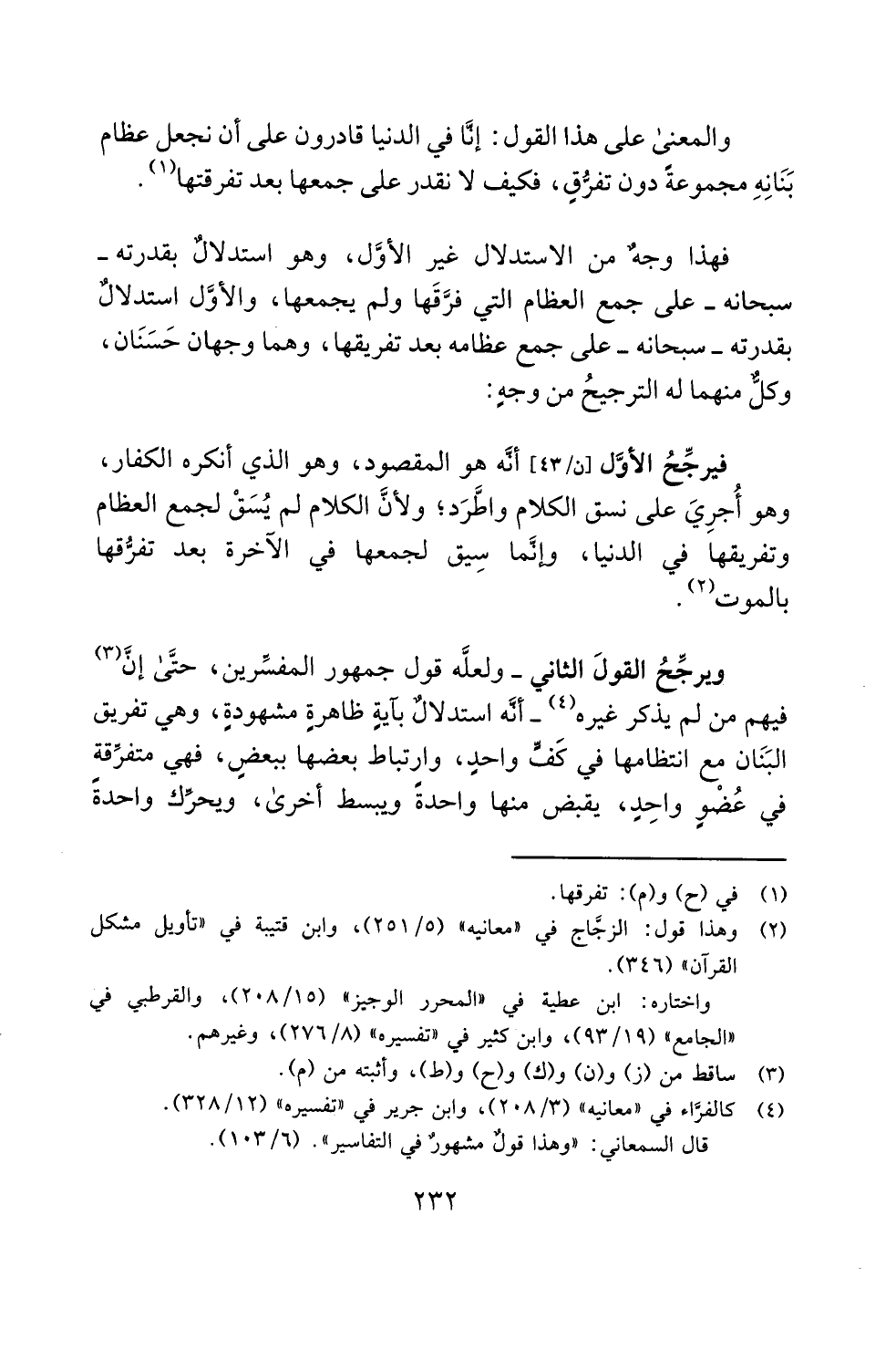 فيرجِّحُ الأوَّل أنَّه هو المقصود، وهو الذي أنكره الكفار، وهو أُجرِيَ على نسق الكلام واطَّرَد؛ ولأنَّ الكلام لم يُسَقْ لجمع العظام وتفريقها في الدنيا، وإنَّما سِيق لجمعها في الآخرة بعد تفرُّقها بالموت (¬2).