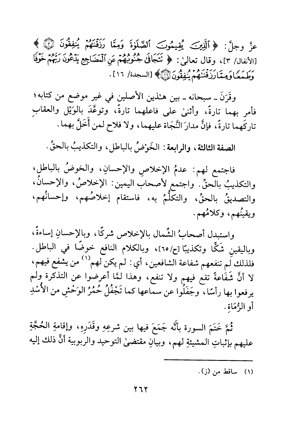 -عزَّ وجلَّ-: {الَّذِينَ يُقِيمُونَ الصَّلَاةَ وَمِمَّا رَزَقْنَاهُمْ يُنْفِقُونَ (3)} [الأنفال: 3]، وقال تعالى: {تَتَجَافَى جُنُوبُهُمْ عَنِ الْمَضَاجِعِ يَدْعُونَ رَبَّهُمْ خَوْفًا وَطَمَعًا وَمِمَّا رَزَقْنَاهُمْ يُنْفِقُونَ (16)} [السجدة: 16].