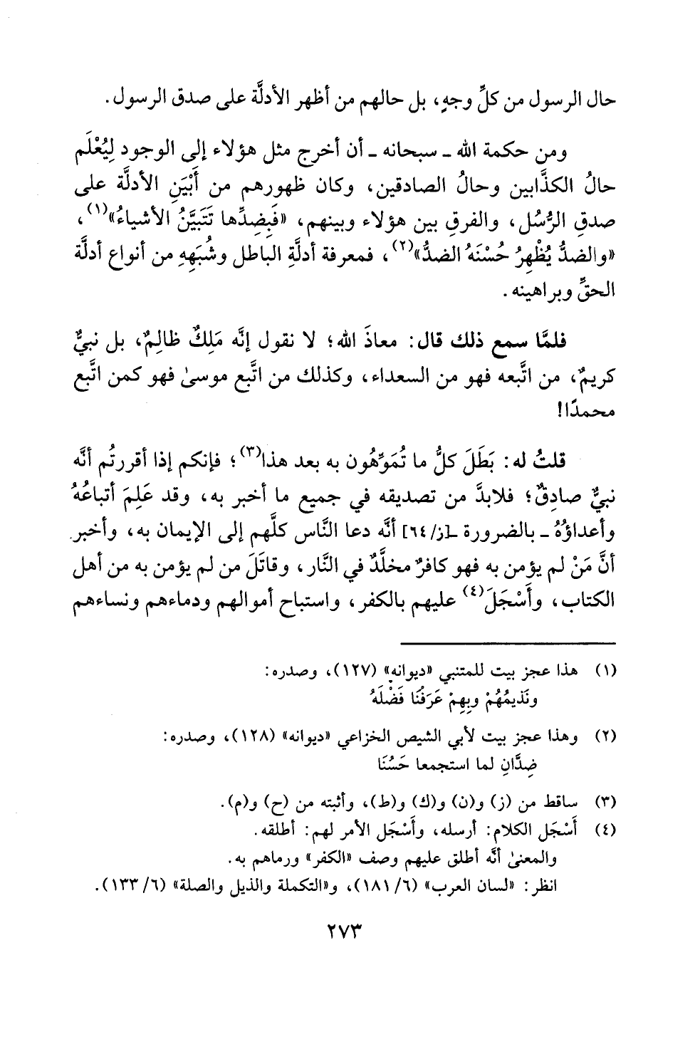 قلتُ له: بَطَلَ كلُّ ما تُمَوِّهُون به بعد هذا (¬3)؛ فإنكم إذا أقررتُم أنَّه نبىٌّ صادِقٌ؛ فلابدَّ من تصديقه في جميع ما أخبر به، وقد عَلِمَ أتباعُهُ وأعداؤُهُ -بالضرورة- أنَّه دعا النَّاس كلَّهم إلى الإيمان به، وأخبر أنَّ مَنْ لم يؤمن به فهو كافرٌ مخلَّدٌ في النَّار، وقاتَلَ من لم يؤمن به من أهل الكتاب، وأَسْجَلَ (¬4) عليهم بالكفر، واستباح أموالهم ودماءهم ونساءهم