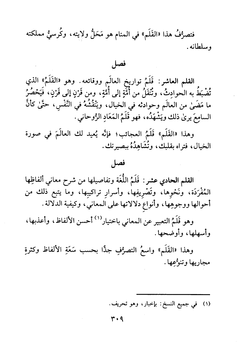 وهذا "القَلَم" واسعُ التصرُّفِ جدًّا بحسب سَعَةِ الألفاظ وكثرةِ مجاريها وتنوُّعِها.