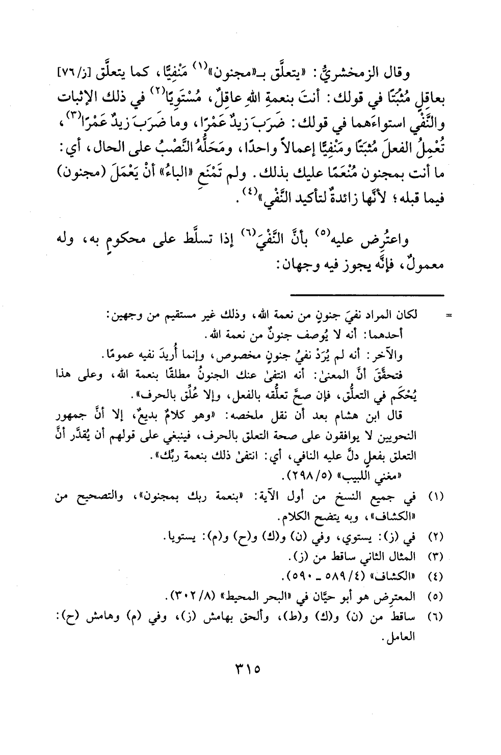 (¬1) في جميع النسخ من أول الآية: "بنعمة ربك بمجنون"، والتصحيح من "الكشاف"، وبه يتضح الكلام.