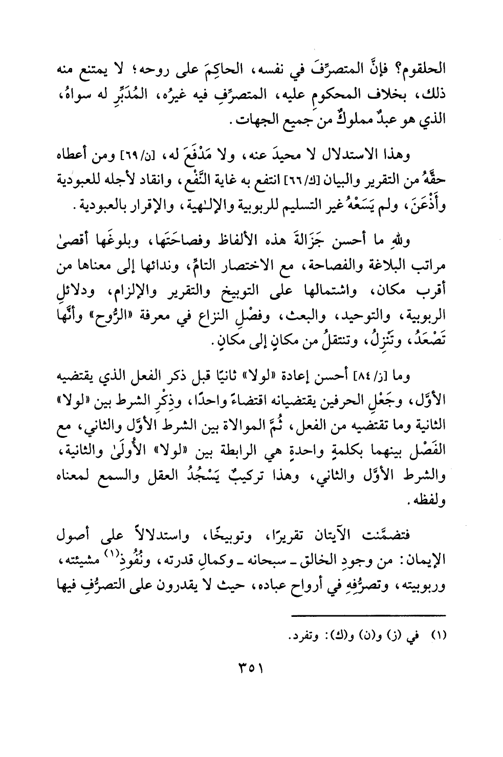 (¬1) في (ز) و (ن) و (ك): وتفرد.