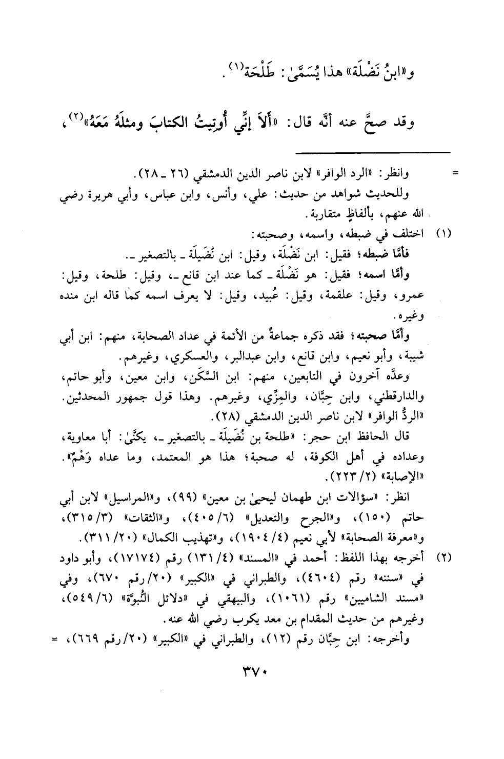 و"ابنُ نَضْلَة" هذا يُسَمَّى: طَلْحَة (¬1).