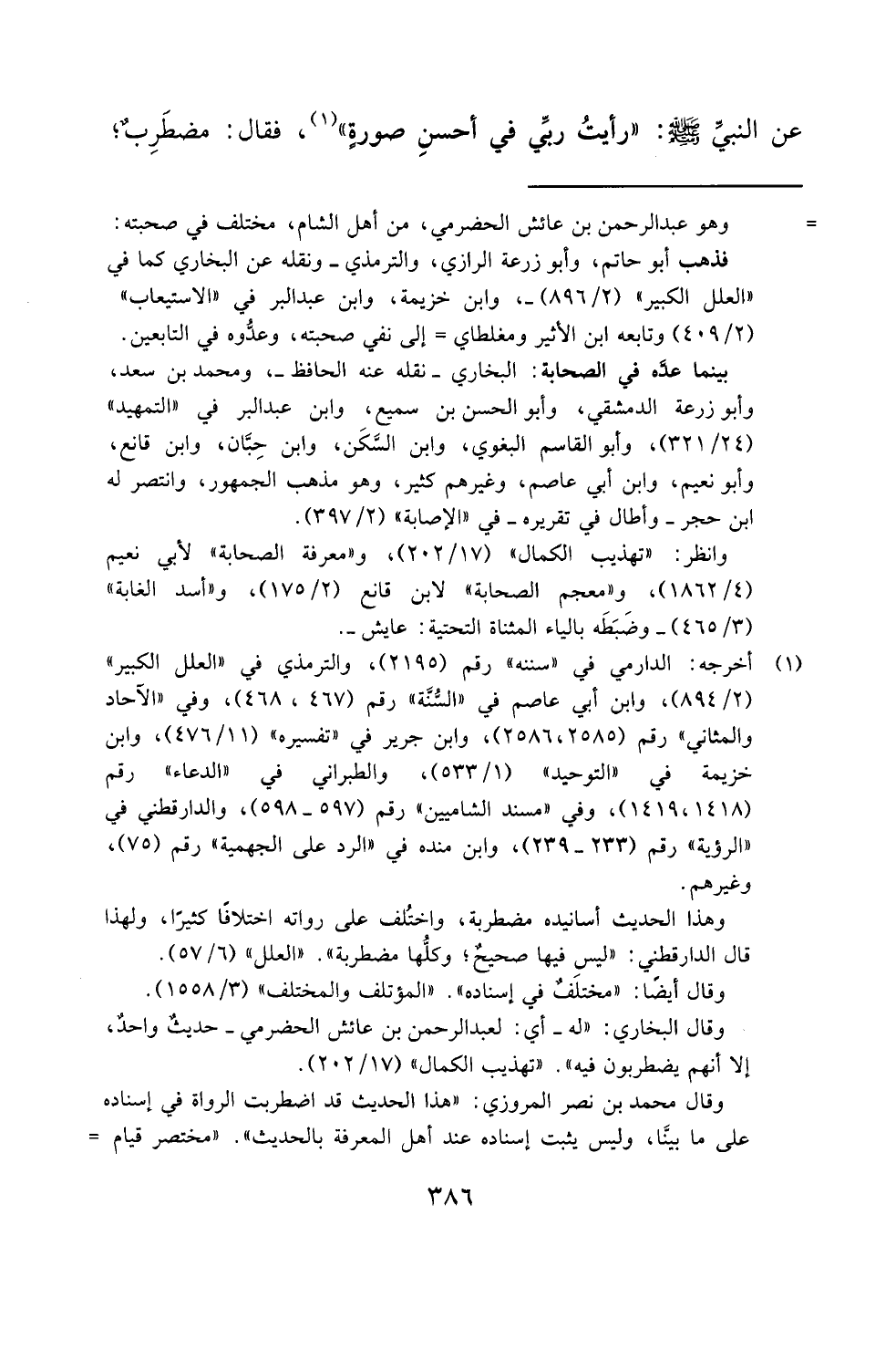 عن النبيِّ - صلى الله عليه وسلم -: "رأيتُ ربِّي في أحسنِ صورةٍ" (¬1)، فقال: مضطَرِبٌ؛