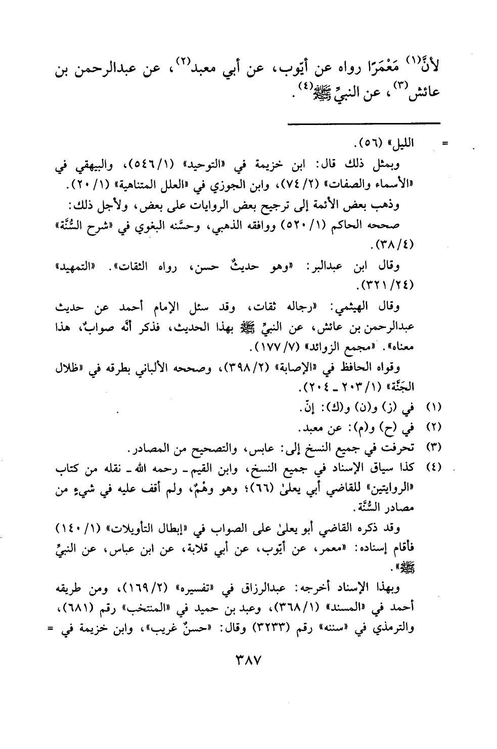 لأنَّ (¬1) مَعْمَرًا رواه عن أيّوب، عن أبي معبد (¬2)، عن عبد الرحمن بن عائش (¬3)، عن النبيِّ - صلى الله عليه وسلم - (¬4).