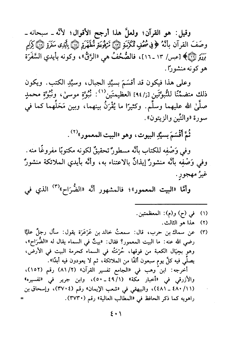 وقيل: هو القرآن؛ ولعلَّ هذا أرجح الأقوال؛ لأنَّه -سبحانه- وصَفَ القرآن بأنَّهُ {فِي صُحُفٍ مُكَرَّمَةٍ (13) مَرْفُوعَةٍ مُطَهَّرَةٍ (14) بِأَيْدِي سَفَرَةٍ (15) كِرَامٍ بَرَرَةٍ (16)} [عبس/ 13 - 16]، فالصُّحُفُ هي " الرَّقُّ"، وكونه بأيدي السَّفَرَة هو كونه منشورًا.