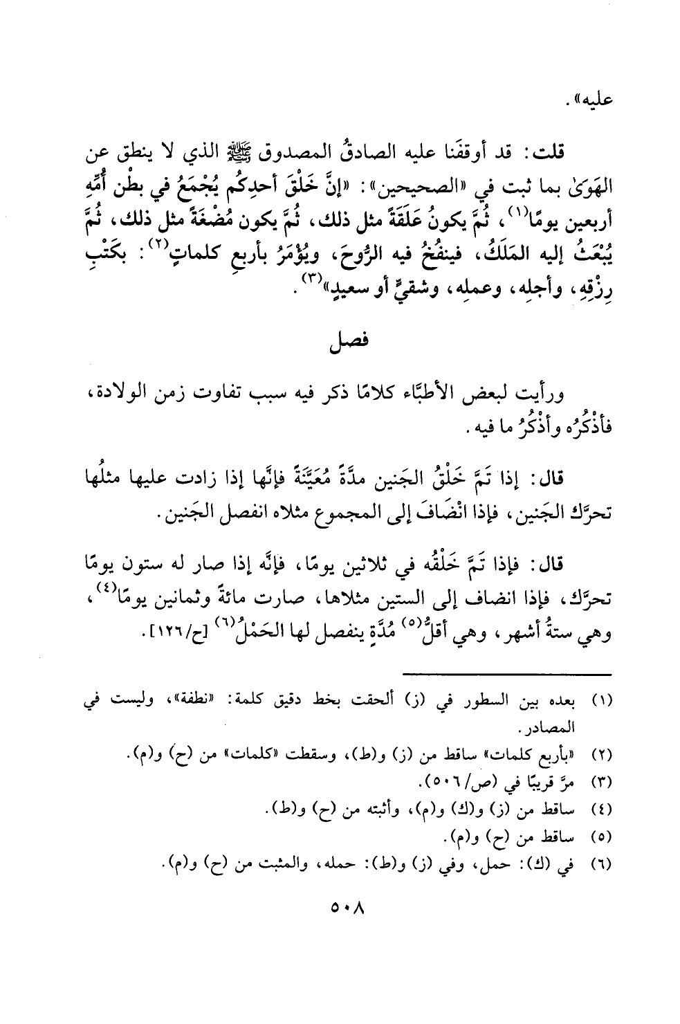 ورأيت لبعض الأطبَّاء كلامًا ذكر فيه سبب تفاوت زمن الولادة، فأذْكُرُه وأذْكُرُ ما فيه.