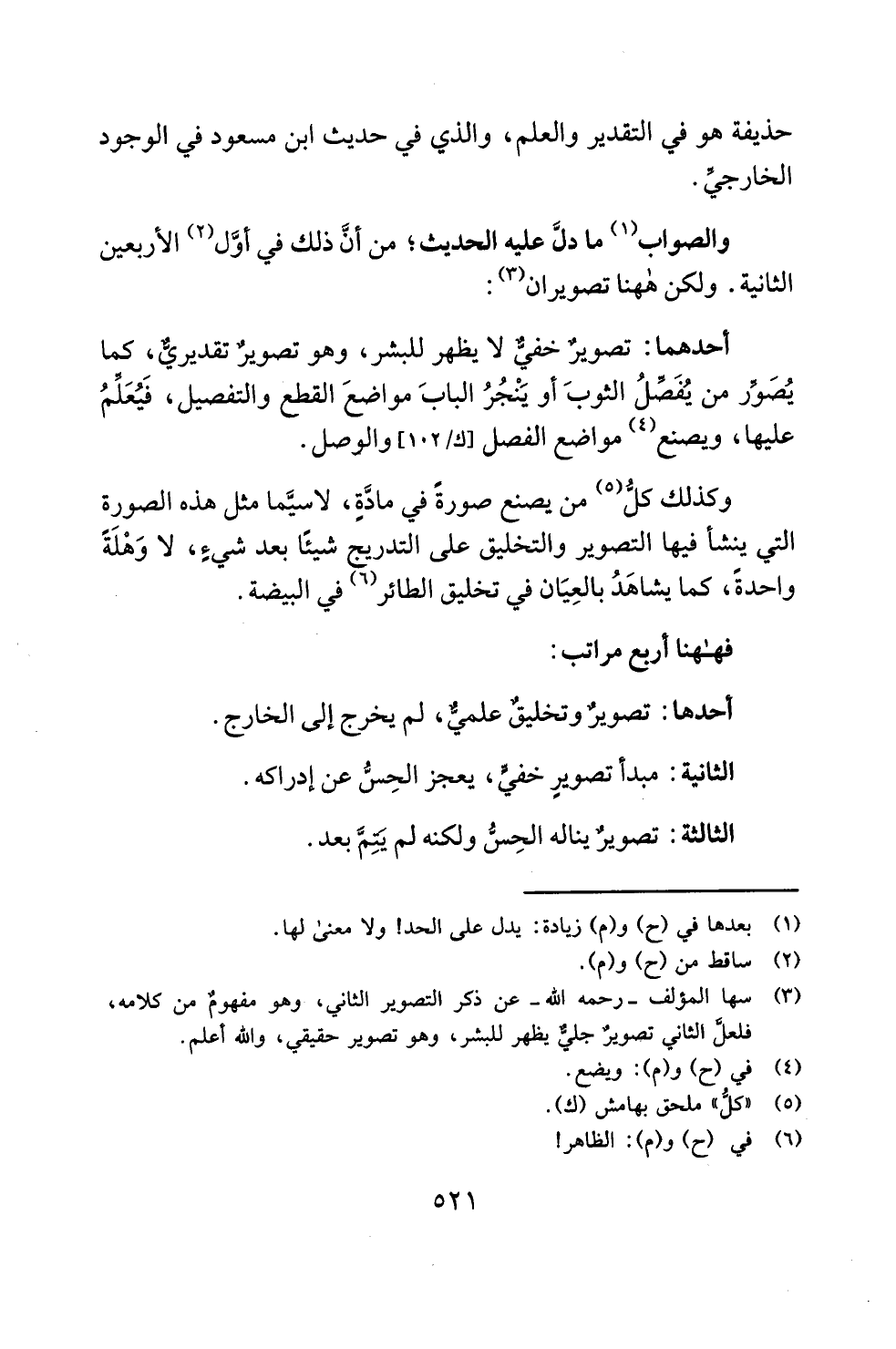 (¬3) سها المؤلف -رحمه الله- عن ذكر التصوير الثاني، وهو مفهومٌ من كلامه، فلعلَّ الثاني تصويرٌ جليٌّ يظهر للبشر، وهو تصوير حقيقي، والله أعلم.