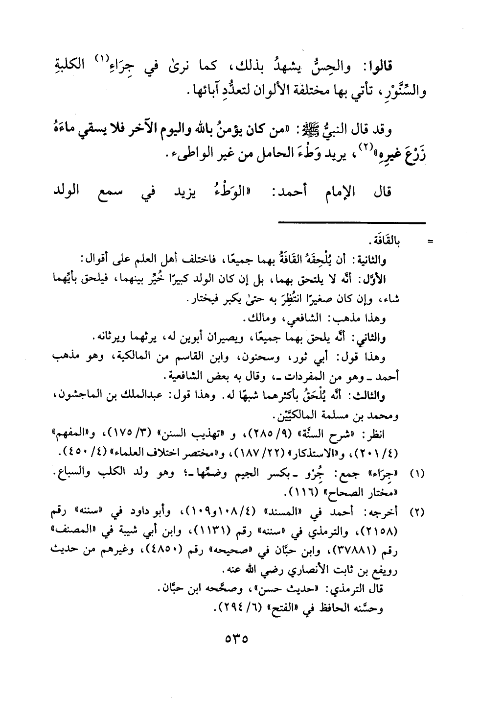 وقد قال النبيُّ - صلى الله عليه وسلم -: "من كان يؤمنُ بالله واليوم الآخر فلا يسقي ماءَهُ زَرْعَ غيرِهِ" (¬2)، يريد وَطْءَ الحامل من غير الواطئ.
