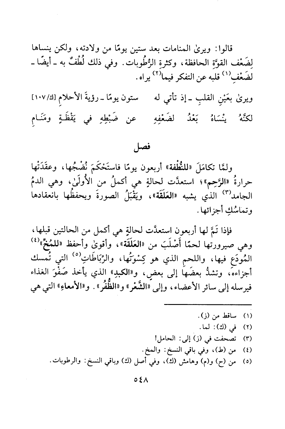 ولمَّا تكامَلَ "للنُّطْفة" أربعون يومًا فاستَحْكَمَ نُضْجُها، وعقَدَتْها حرارةُ "الرَّحِم"؛ استعدَّت لحالةٍ هي أكملُ من الأُولَى، وهي الدمُ الجامد (¬3) الذي يشبه "العَلَقَة"، ويَقْبَلُ الصورةَ ويحفظُها بانعقادها وتماسُكِ أجزائها.