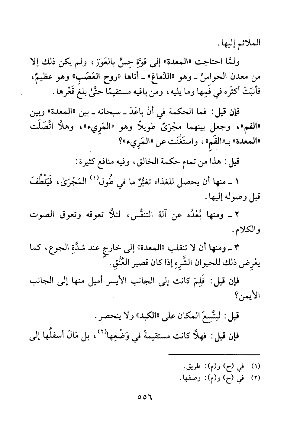 فإن قيل: فما الحكمة في أنْ باعَدَ -سبحانه- بين "المعدة" وبين "الفم"، وجعل بينهما مجْرَىً طويلًا وهو "المَرِيء"، وهلَّا اتَّصَلَت "المعدة" بـ"الفَمِ"، واستَغْنَت عن "المَرِيء"؟
