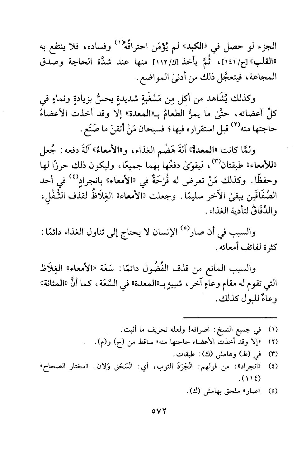والسبب في أن صار (¬5) الإنسان لا يحتاج إلى تناول الغذاء دائمًا: كثرة لفائف أمعائه.