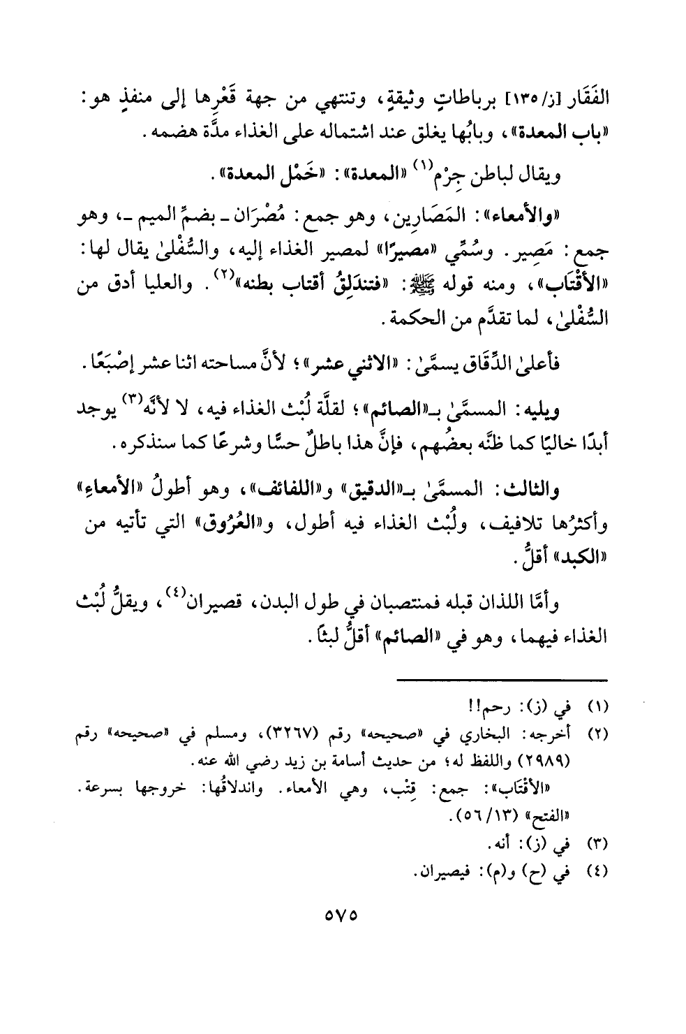 ويليه: المسمَّى بـ"الصائم"؛ لقلَّة لُبْث الغذاء فيه، لا لأنَّه (¬3) يوجد أبدًا خاليًا كما ظنَّه بعضُهم، فإنَّ هذا باطلٌ حسًّا وشرعًا كما سنذكره.