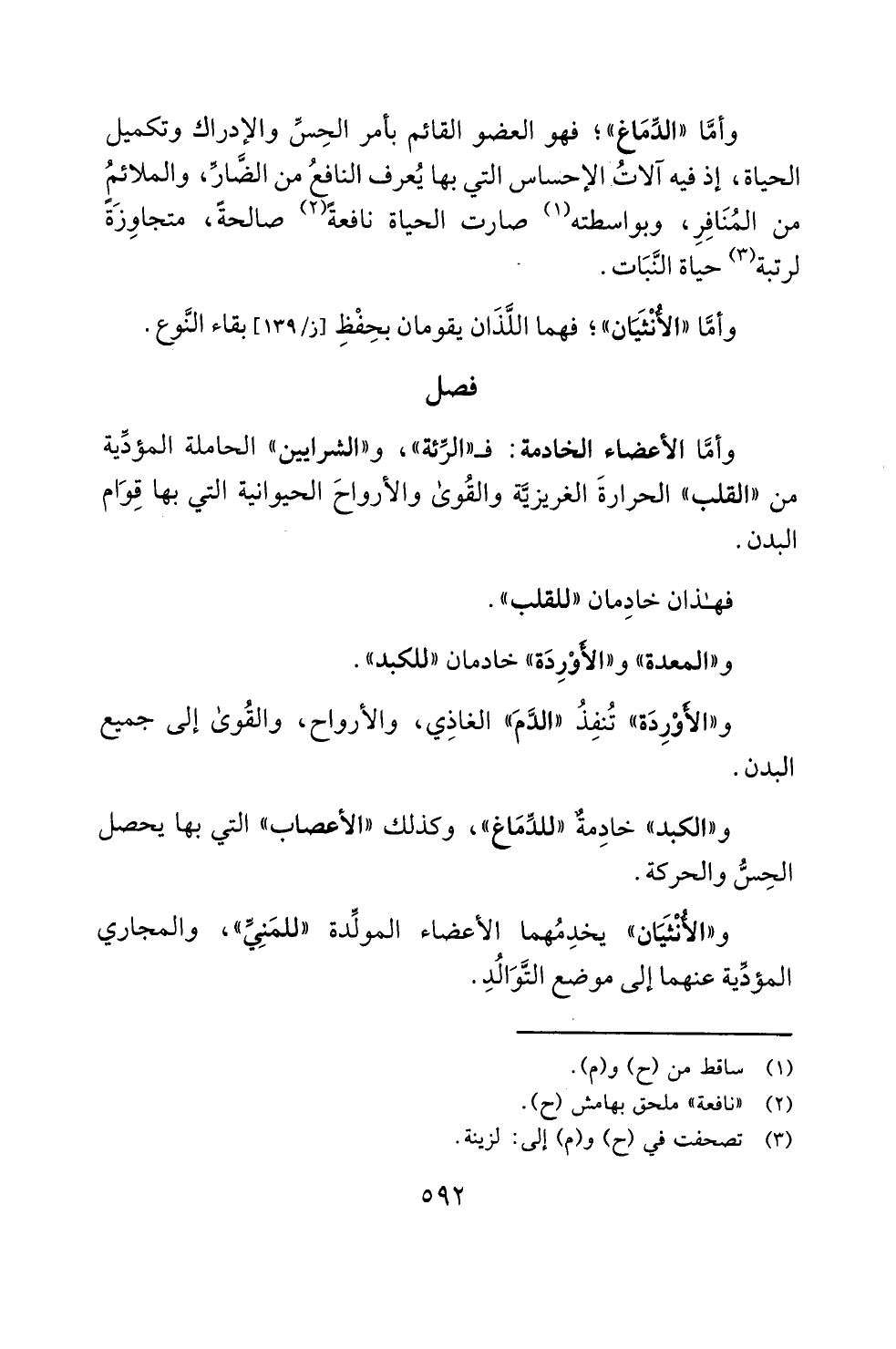 و"الكبد" خادِمةٌ "للدِّمَاغ"، وكذلك "الأعصاب" التي بها يحصل الحِسُّ والحركة.