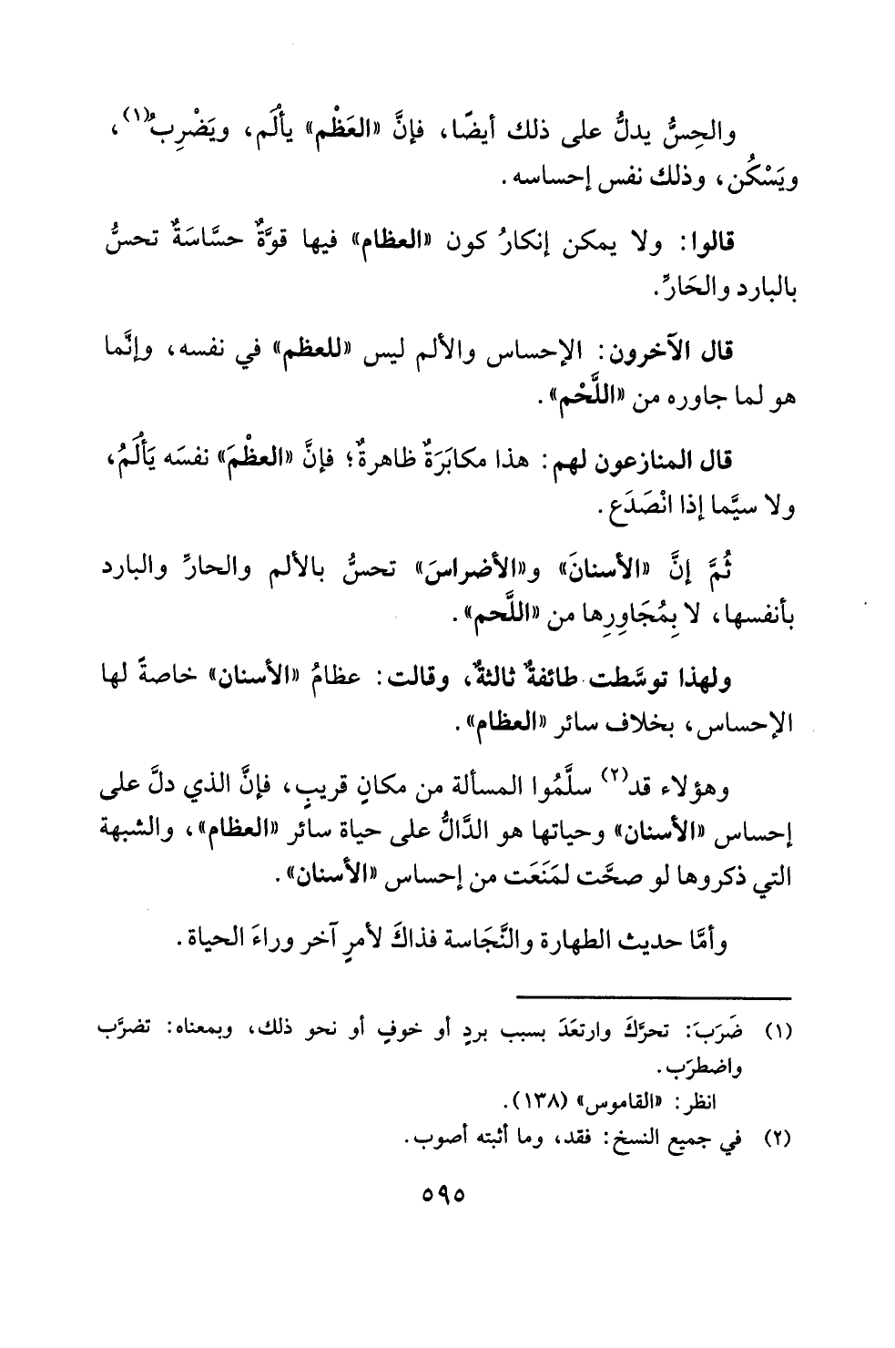 قال الآخرون: الإحساس والألم ليس "للعظم" في نفسه، وإنَّما هو لما جاوره من "اللَّحْم".
