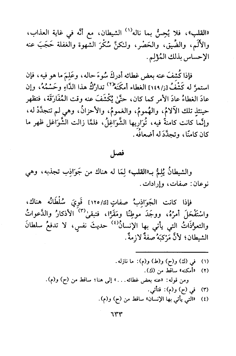 والشيطانُ يُلِمُّ بـ "القلب" لِمَا له هناك من جَوَاذِب تجذبه، وهي نوعان: صفات، وإرادات.