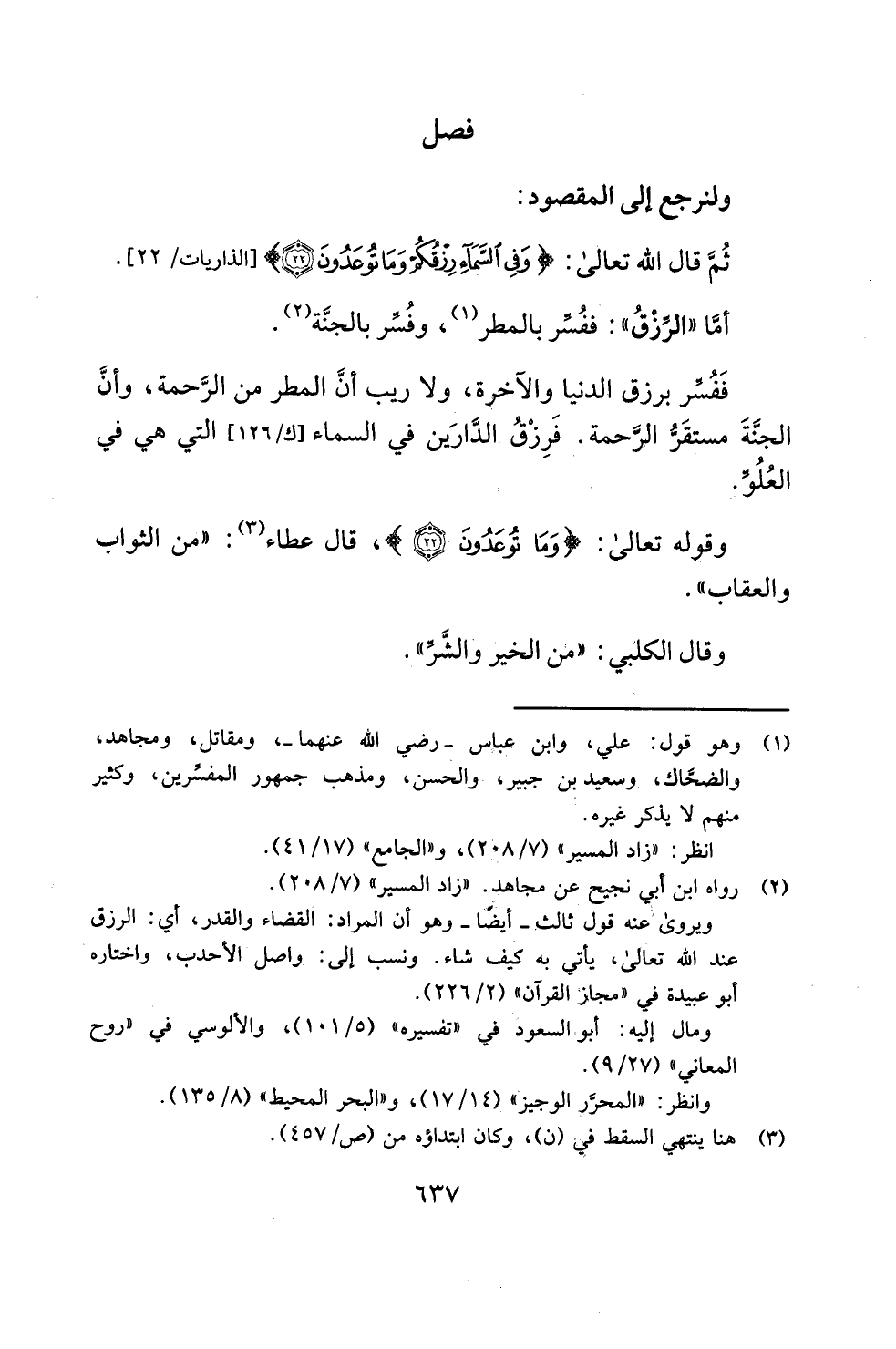 فَفُسِّر برزق الدنيا والآخرة، ولا ريب أنَّ المطر من الرَّحمة، وأنَّ الجنَّةَ مستقَرُّ الرَّحمة. فَرِزْقُ الدَّارَين في السماء [ك/126] التي هي في العُلُوِّ.