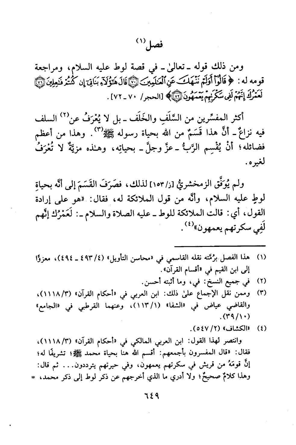 أكثر المفسِّرين من السَّلَفِ والخَلَف -بل لا يُعْرَفُ عن (¬2) السلف فيه نزاعٌ- أنَّ هذا قَسَم من الله بحياة رسوله - صلى الله عليه وسلم - (¬3). وهذا من أعظم فضائله؛ أنْ يُقْسِم الرَّبُّ -عزَّ وجلَّ- بحياتِه، وهذه مزيَّةٌ لا تُعْرَفُ لغيره.