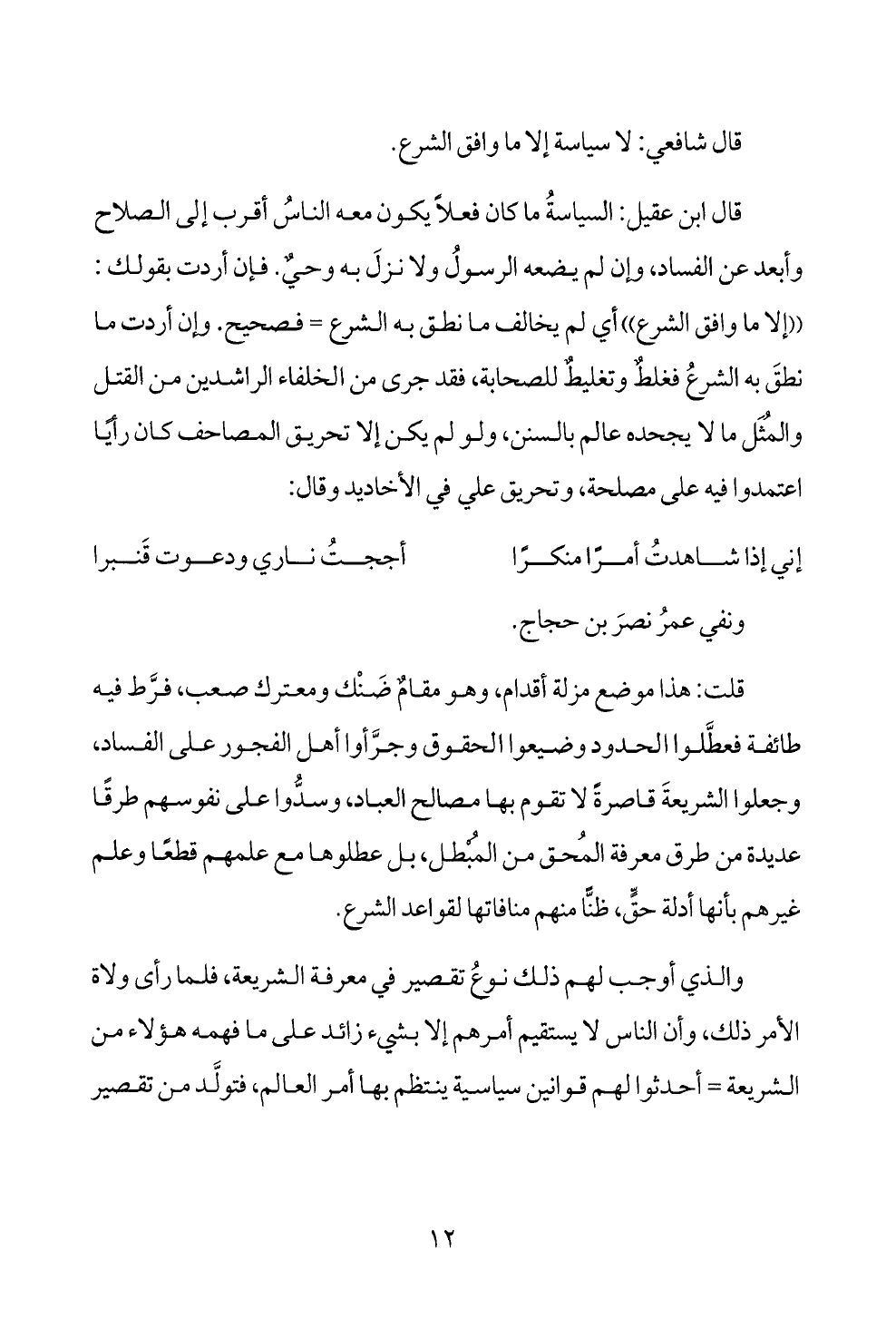 قال شافعي: لا سياسة إلا ما وافق الشرع.