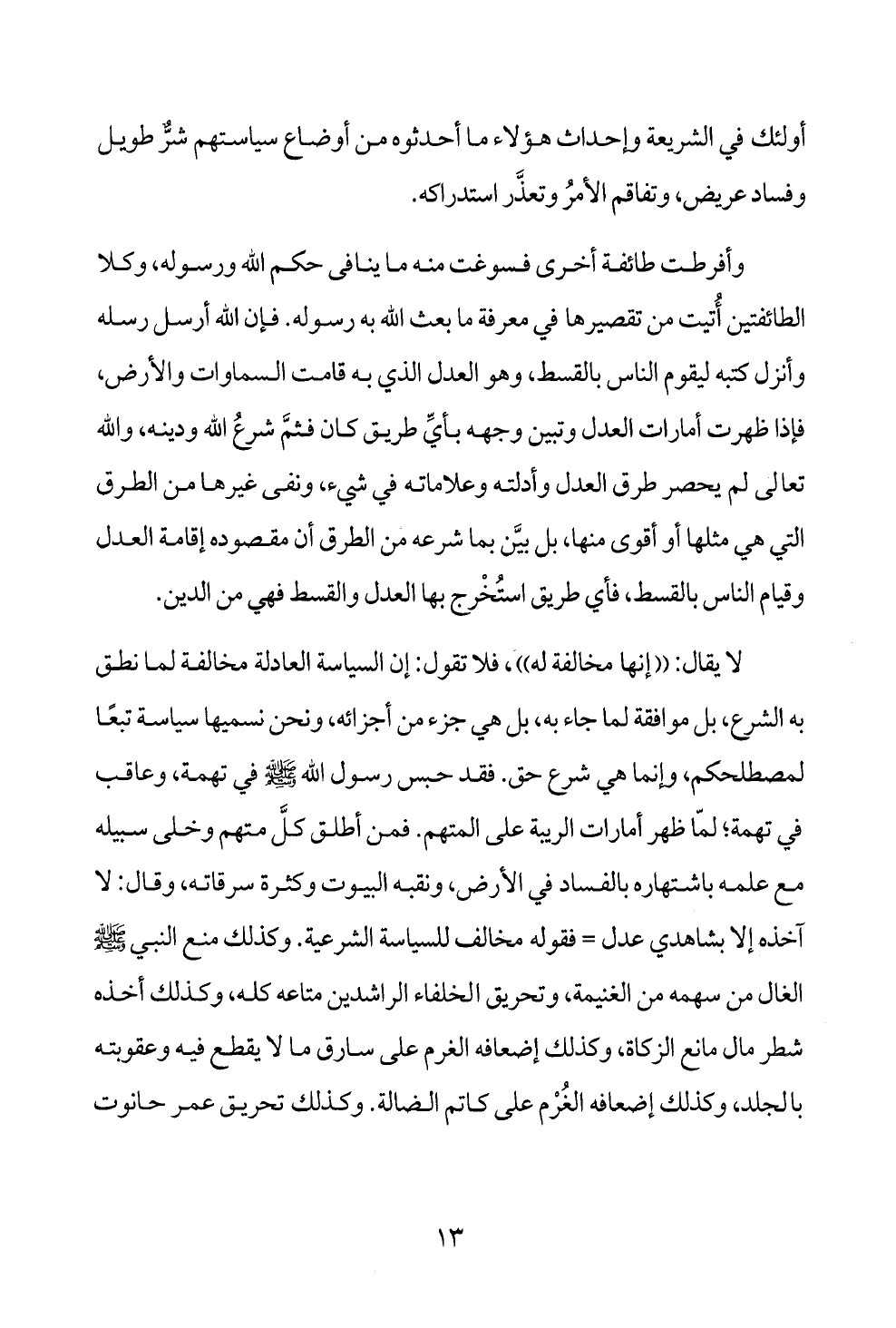 وقيام الناس بالقسط، فأي طريق استخرج بها العدل والقسط فهي من الدين.