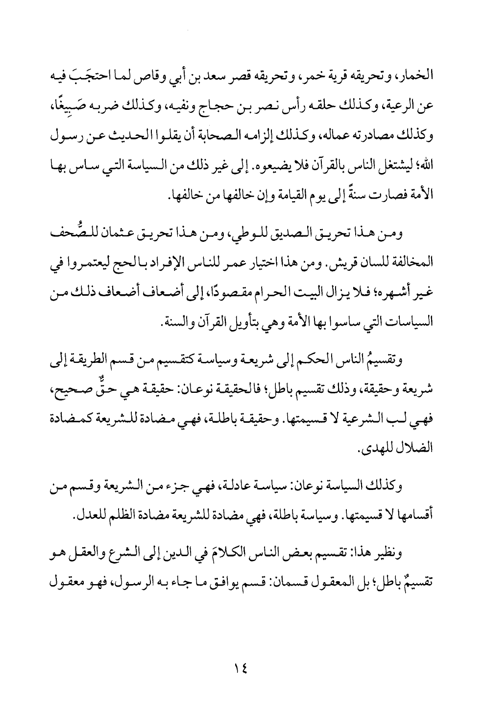 وتقسيم الناس ا لحكم إ لى شريعة وسياسة كتقسيم من قسم الطريقة إ لى