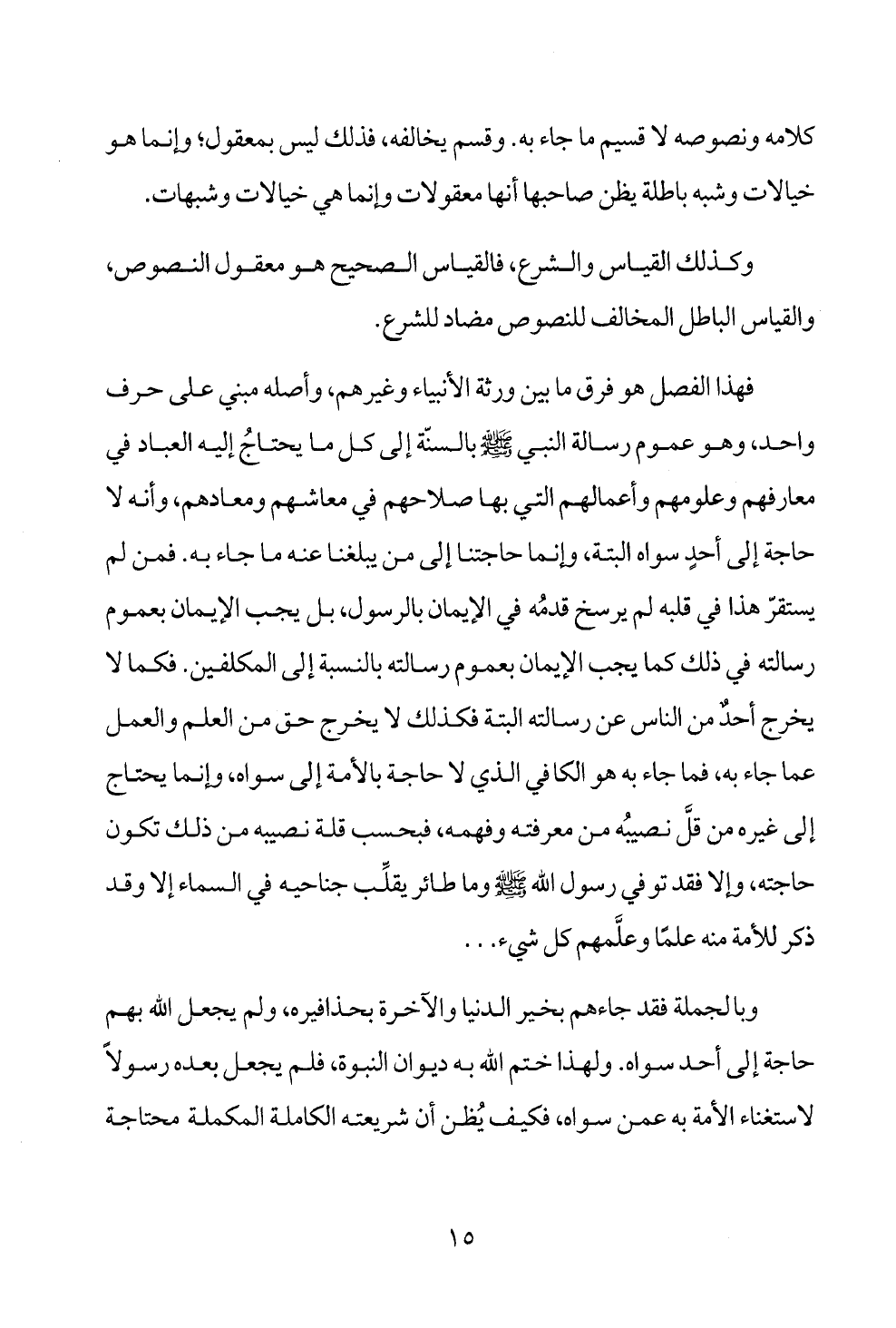 واحد، وهو عموم رسالة النبي! م بالسنة إ لى كل ما يحتاج إليه العباد في