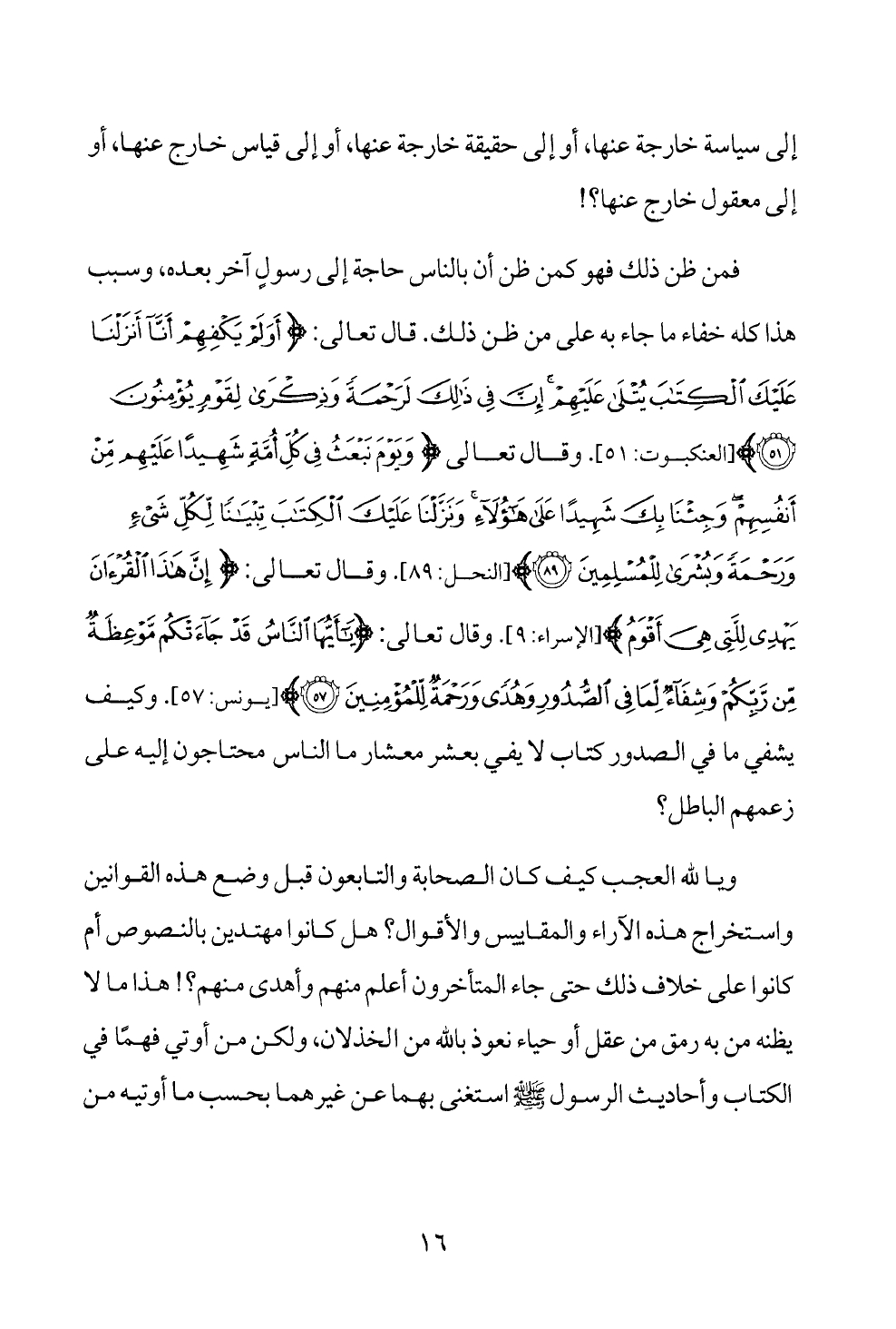 يشفي ما في الصدور كتاب لا يفي بعشر معشار ما الناس محتاجون إليه على
