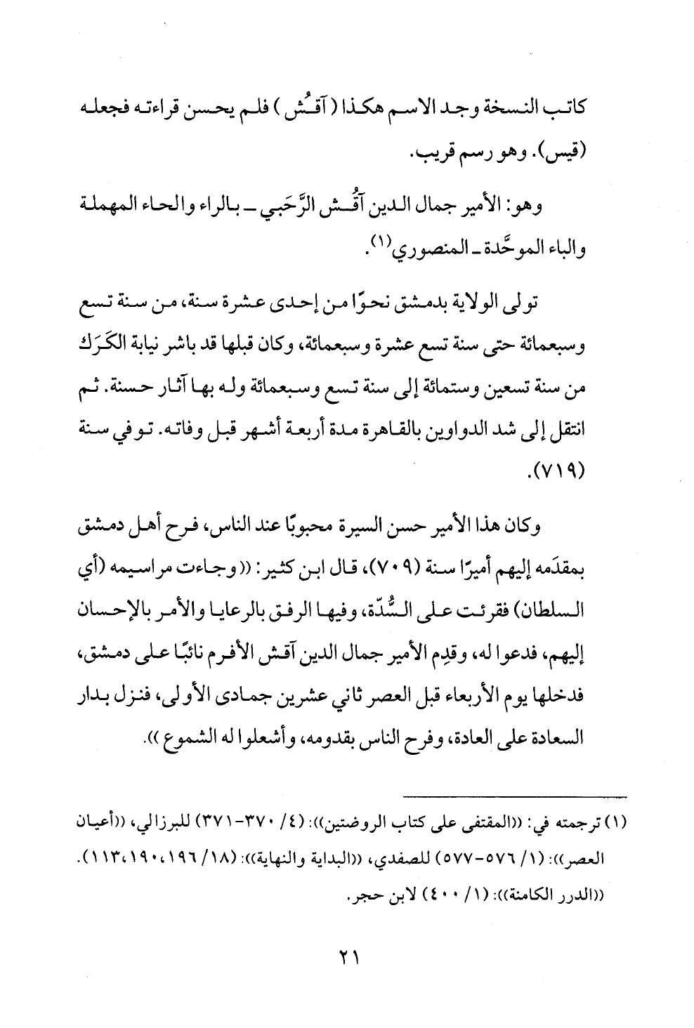 وهو: الامير جمال الدين اقش الرحبي - بالراء وا لحاء المهملة