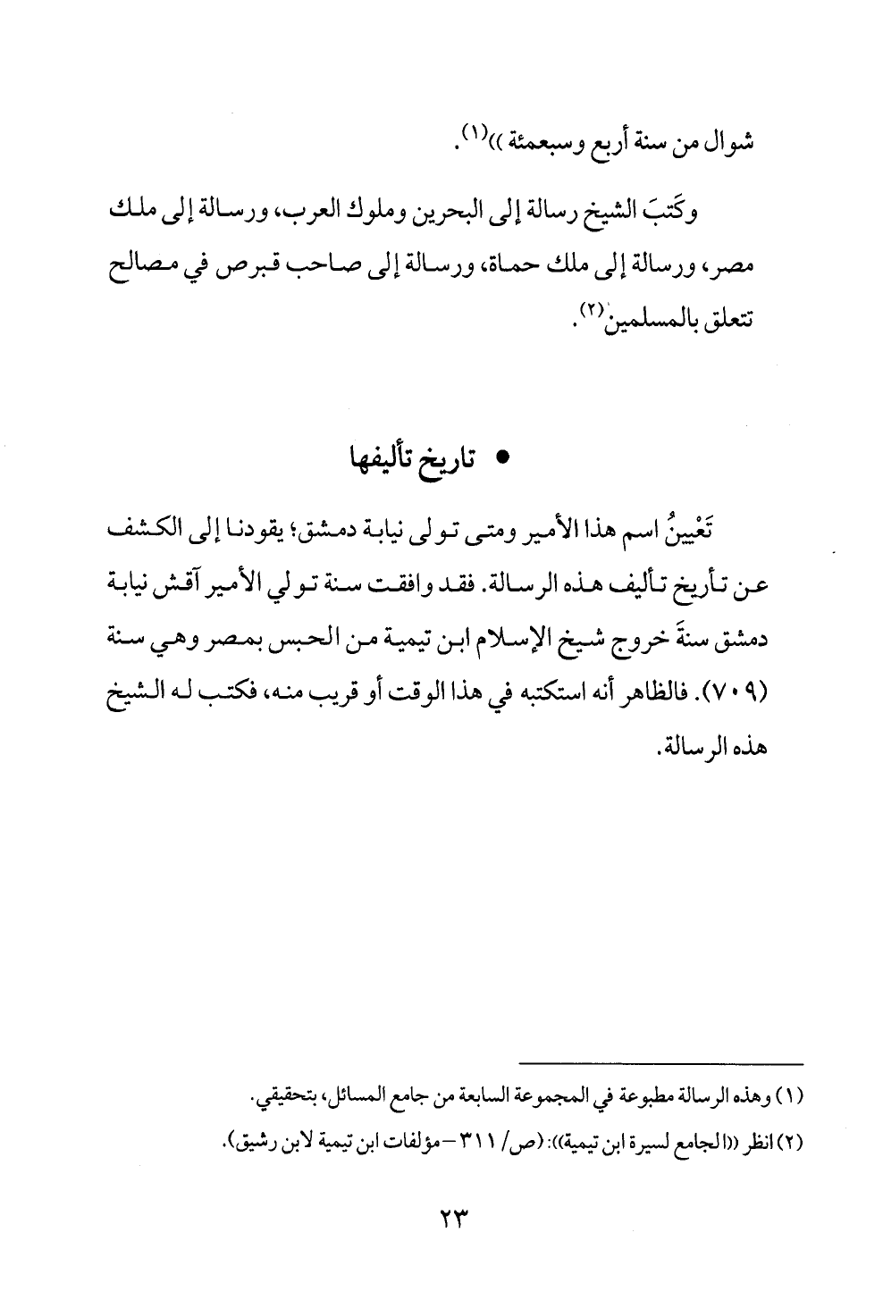 (2) انظر ((ا لجامع لسيرة ابن تيمية)): (ص/ 1 1 3 - مؤلفات ابن تيمية لابن رشيق).