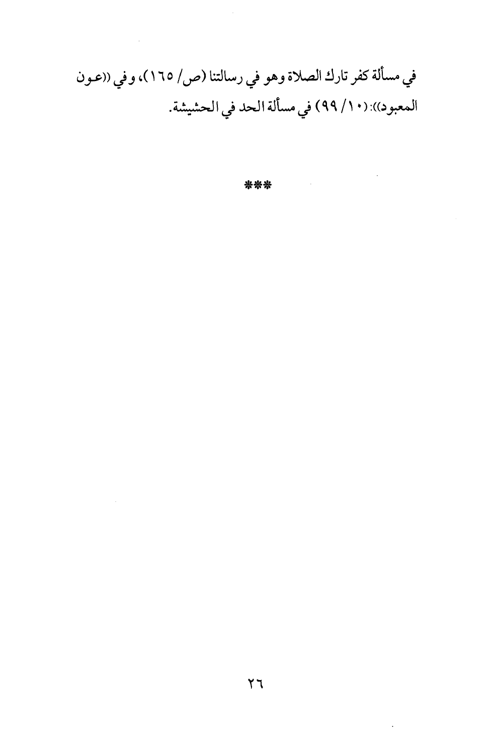 في مسالة كفر تارك الصلاة وهو في رسالتنا (ص/ 65 1)، وفي ((عون