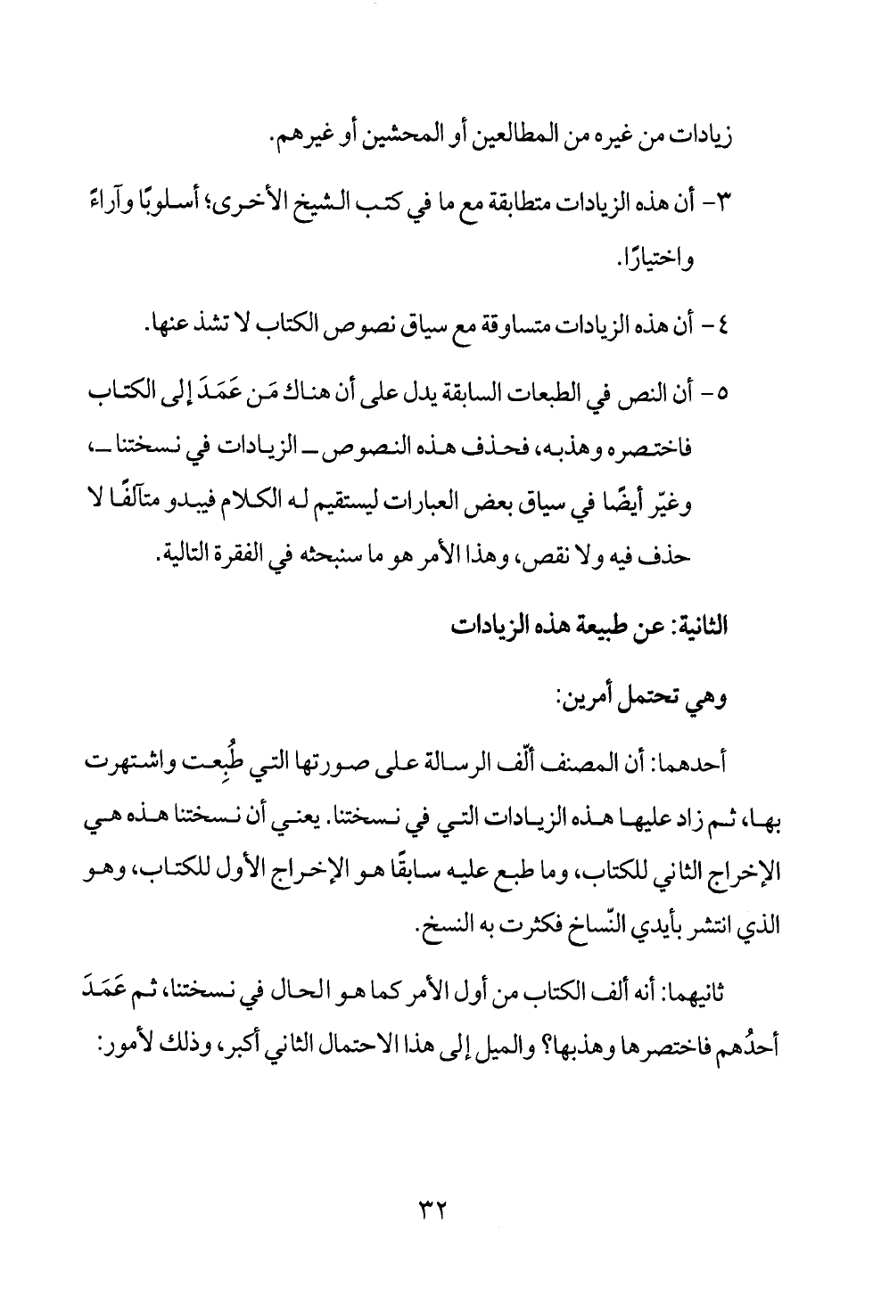 أحدهما: أن المصنف ألف الرسالة على صورتها التي طبعت واشتهرت